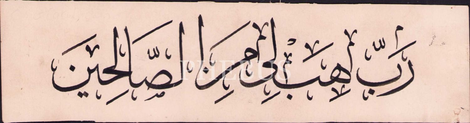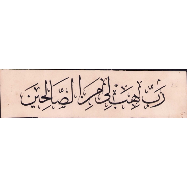 Sülüs Yazı ile Saffat Suresi 100. Ayet, "Rabbi heb lî mine's-sâlihîn [Rabbim bana sâlihlerden olacak bir evlat ver]", 21x4 cm