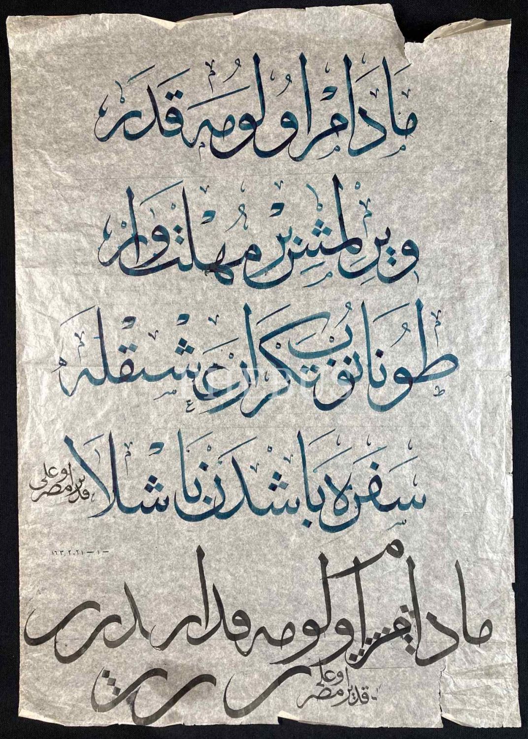 Celî Sülüs Yazı Meşki, üst kısım haliyle, 35x21 cm