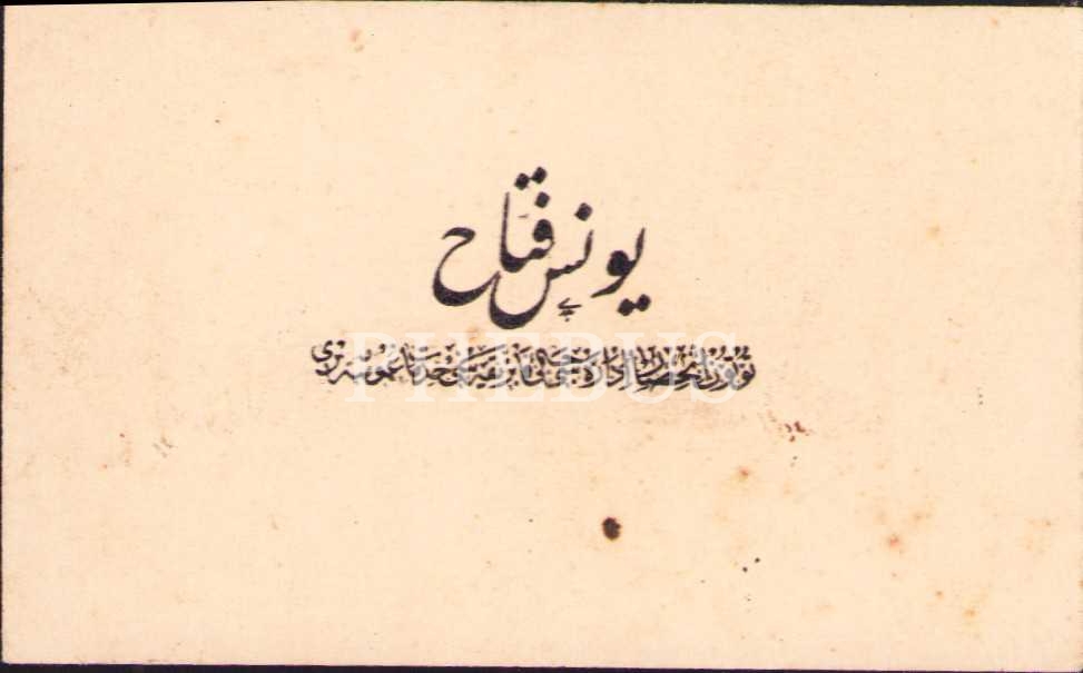 Hattat Bedri tarafından hazırlanmış Tütün İnhisar İdâresi'nde Çalışan Yunus Fettah'a âit kartvizit, 8x5 cm