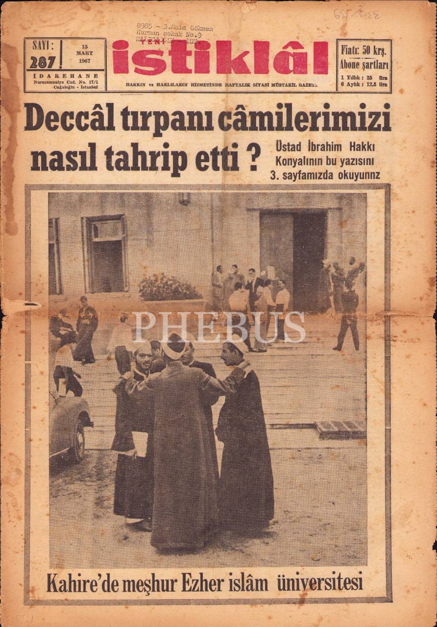 İstiklâl Gazetesi, İbrahim Hakkı Konyalı'nın Bir Yazısı: "Deccâl Tırpanı Câmilerimizi Nasıl Tahrip Etti?", Sayı: 287, 1967 tarihli, 12 sayfa, 44x30 cm