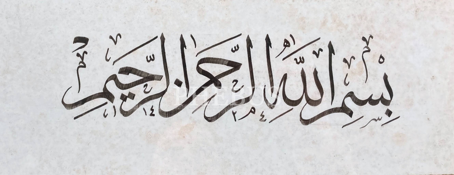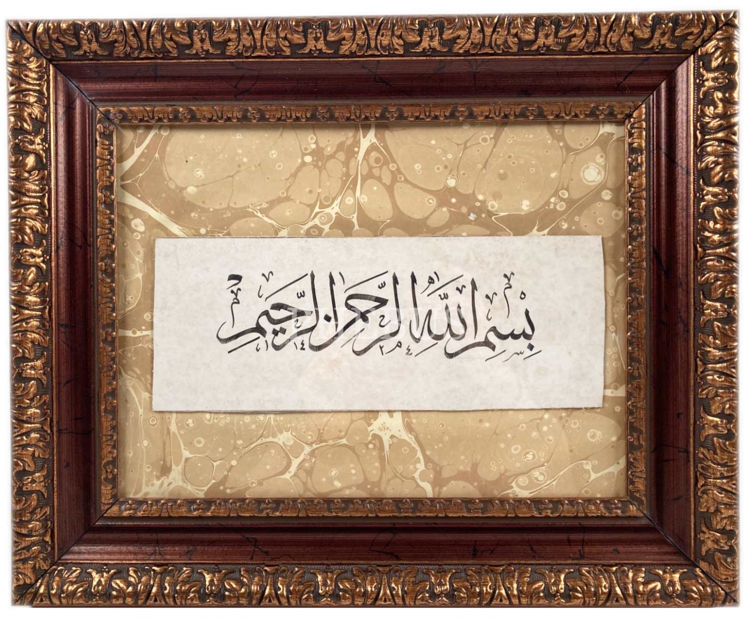 Celî Sülüs Besmele-i Şerif, ebrulu, çerçeveli, sadece yazı 28x11 cm