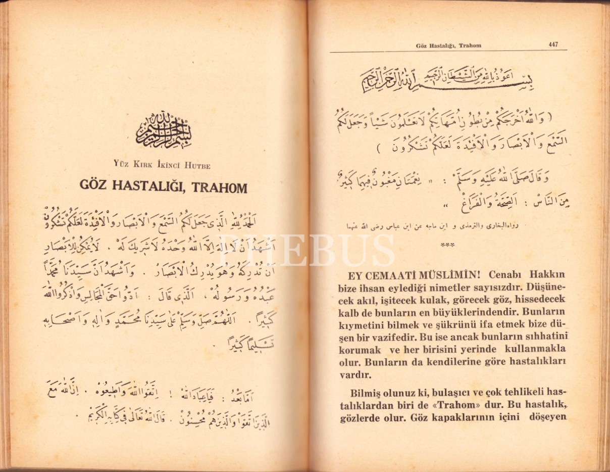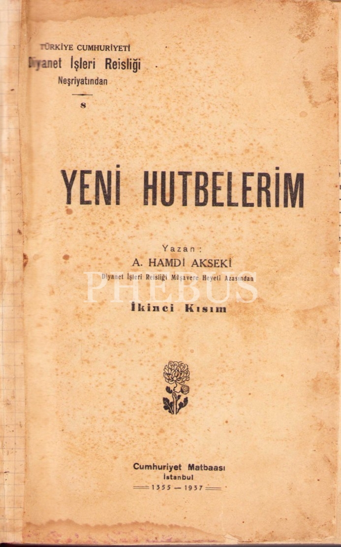 Yeni Hutbelerim, A. Hamdi Akseki, İkinci Kısım, Cumhuriyet Matbaası, İstanbul, 1937, Diyanet İşleri Reisliği Yayınlarından, 559 sayfa, 16x23 cm