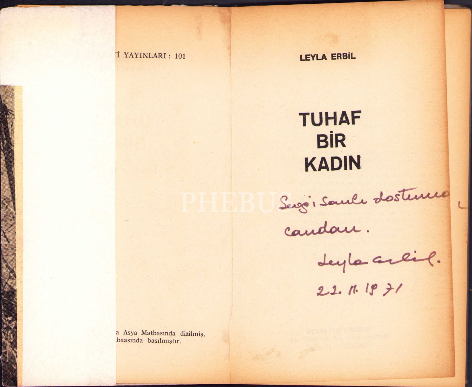 Leyla Erbil'den İthaflı ve İmzalı, İlk Romanı "Tuhaf Bir Kadın", Habora Kitabevi, 1971, 139 sayfa, ön kapağı yorgun hâliyle, 11x19 cm