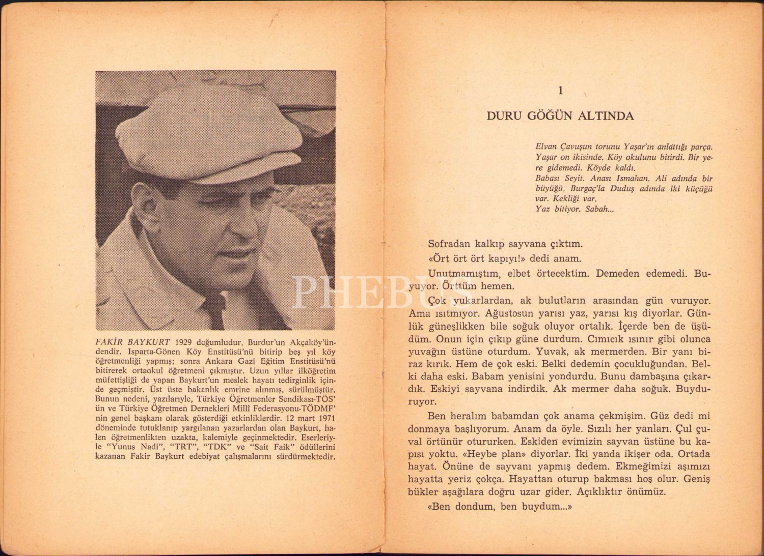 İthaf, "Erdoğan ve Yurdanur kardeşlere mutluluk dilekleriyle sevgilerle. 21. 6. 1975 F. Baykurt" şeklindedir.