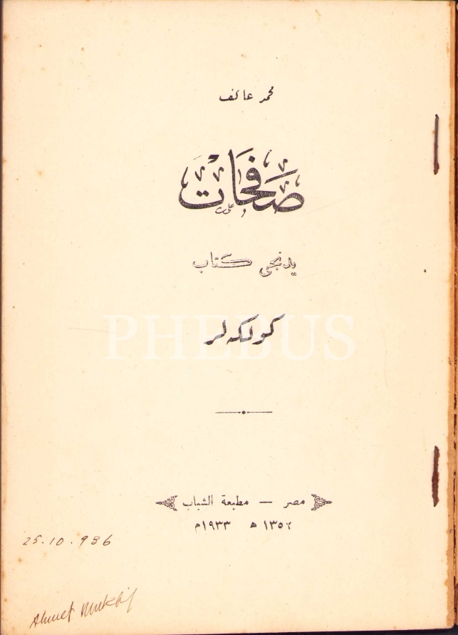 Osmanlıca "Safahat" Yedinci Kitap: Gölgeler, Mehmed Akif, "Mısır Matbaatü'ş Şebab", 1352, 95 sayfa, ön kapağı yorgun hâliyle, 14x19 cm