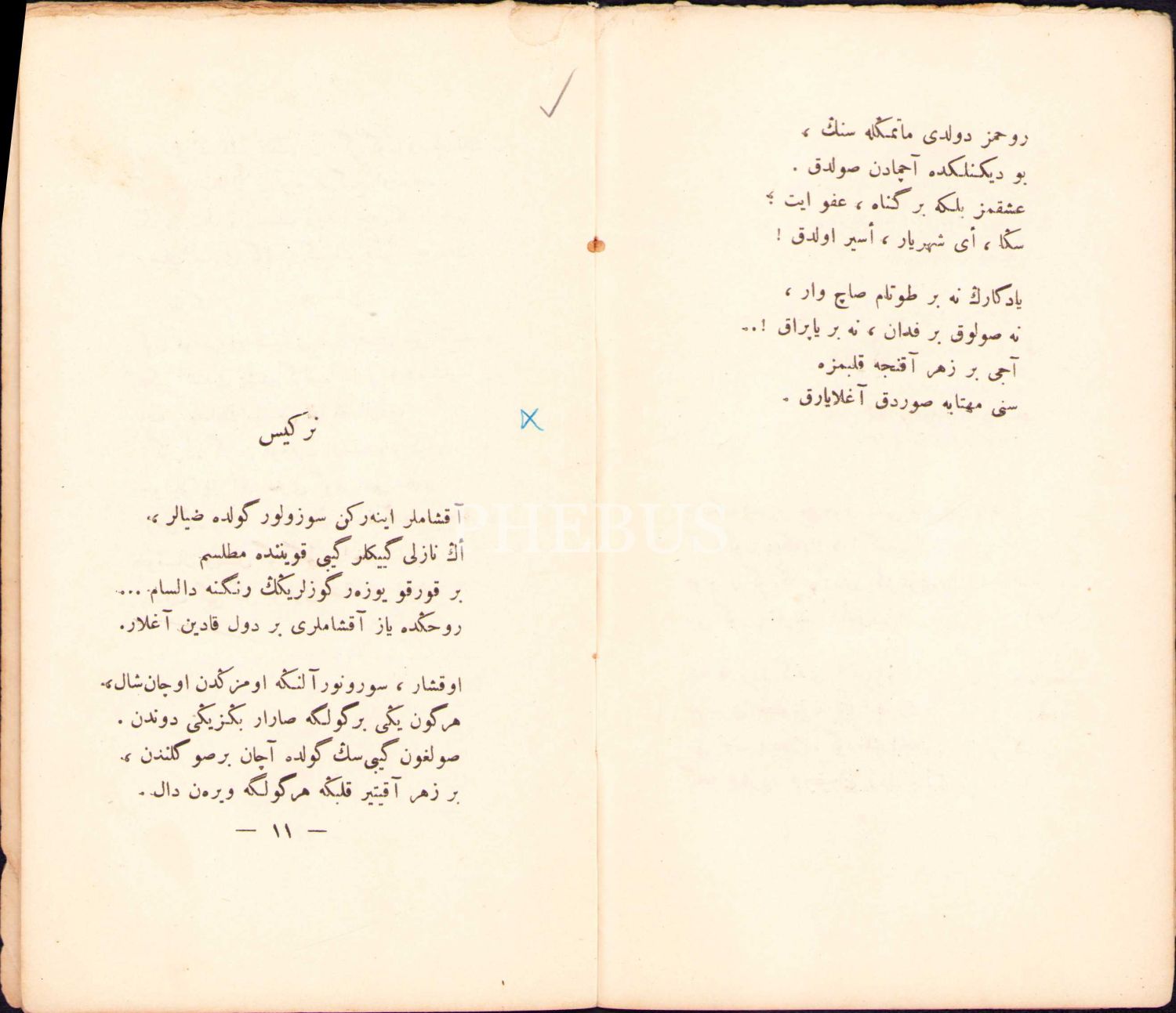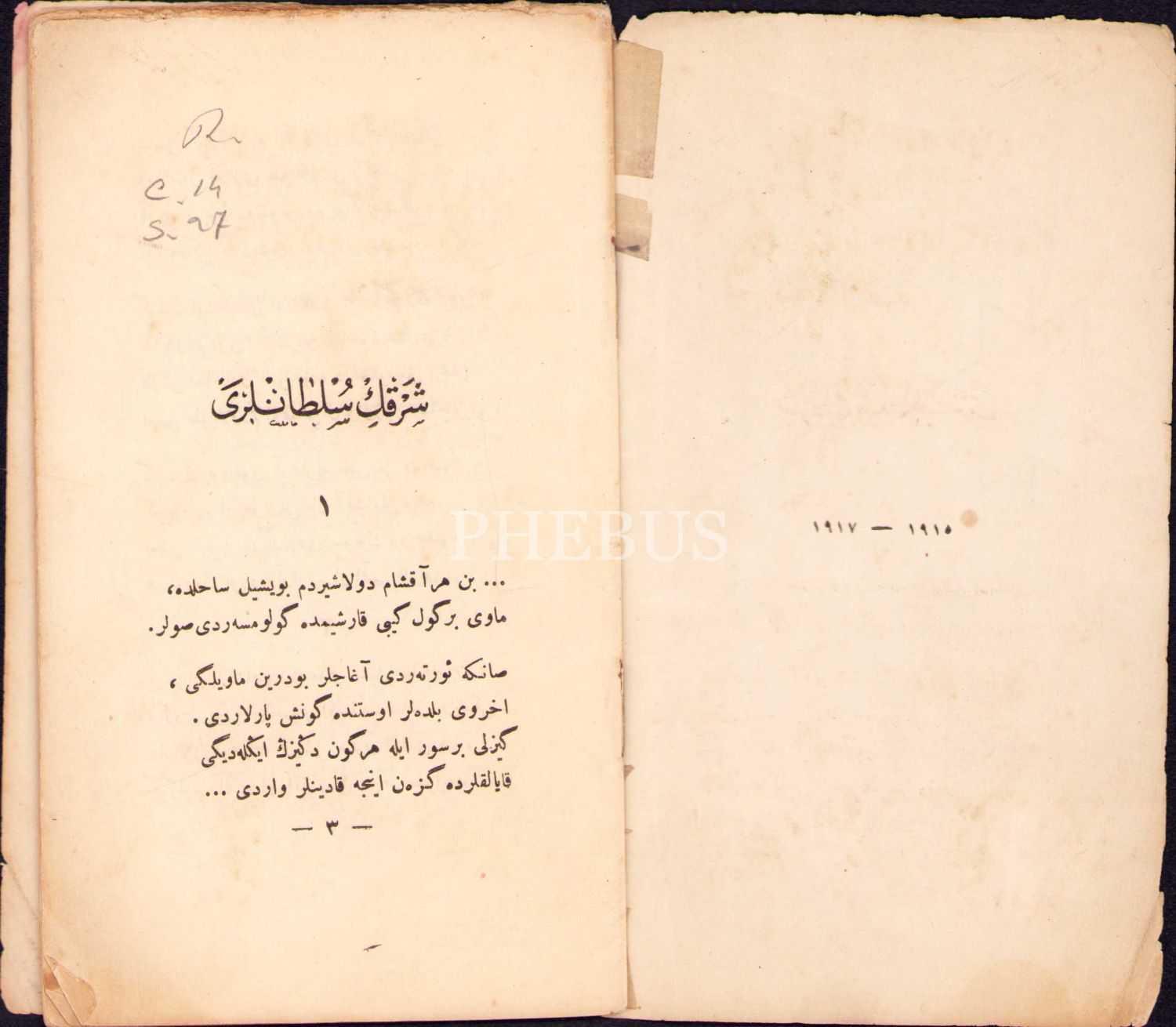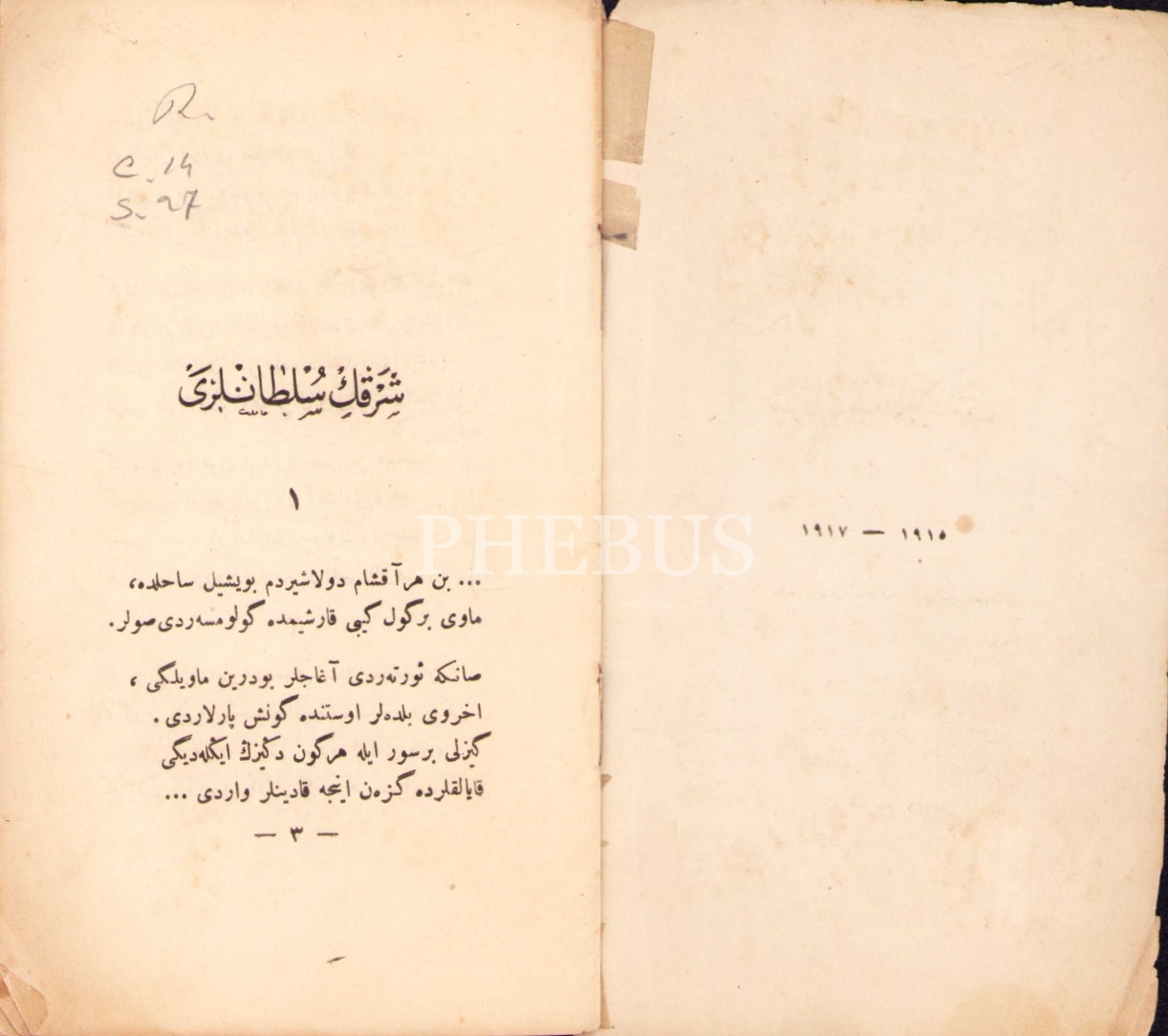Faruk Nafiz'in İlk Şiir Kitabı Osmanlıca "Şarkın Sultanları", İstanbul Orhaniye Matbaası 1918, 38 sayfa, oldukça yıpranmış hâliyle, 11x19 cm