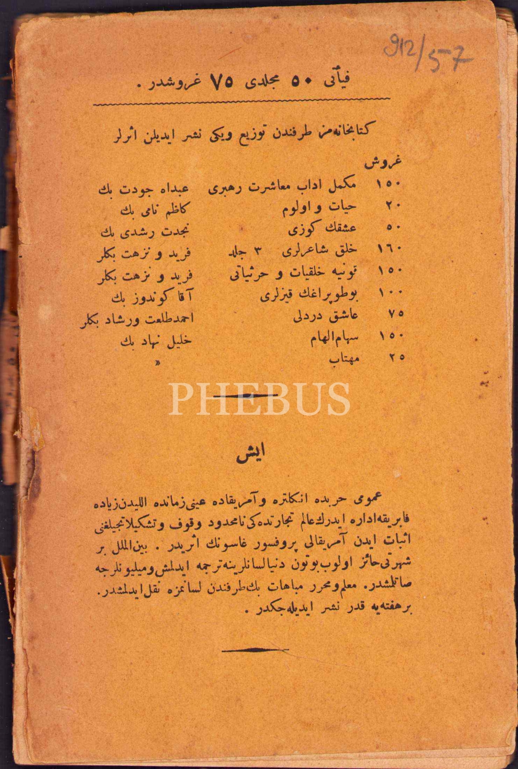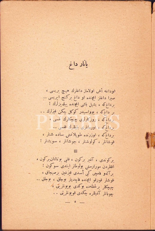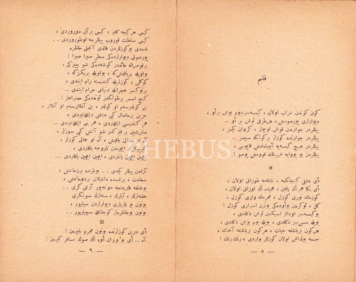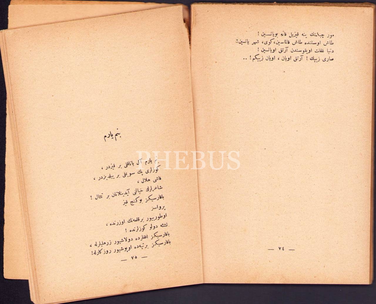 Osmanlıca Yusuf Ziya'nın "Yanardağ -Şiir-", Birinci Tab', Marifet Matbaası 1928, 95 sayfa, sayfaları yıpranmış hâliyle, 12x18 cm