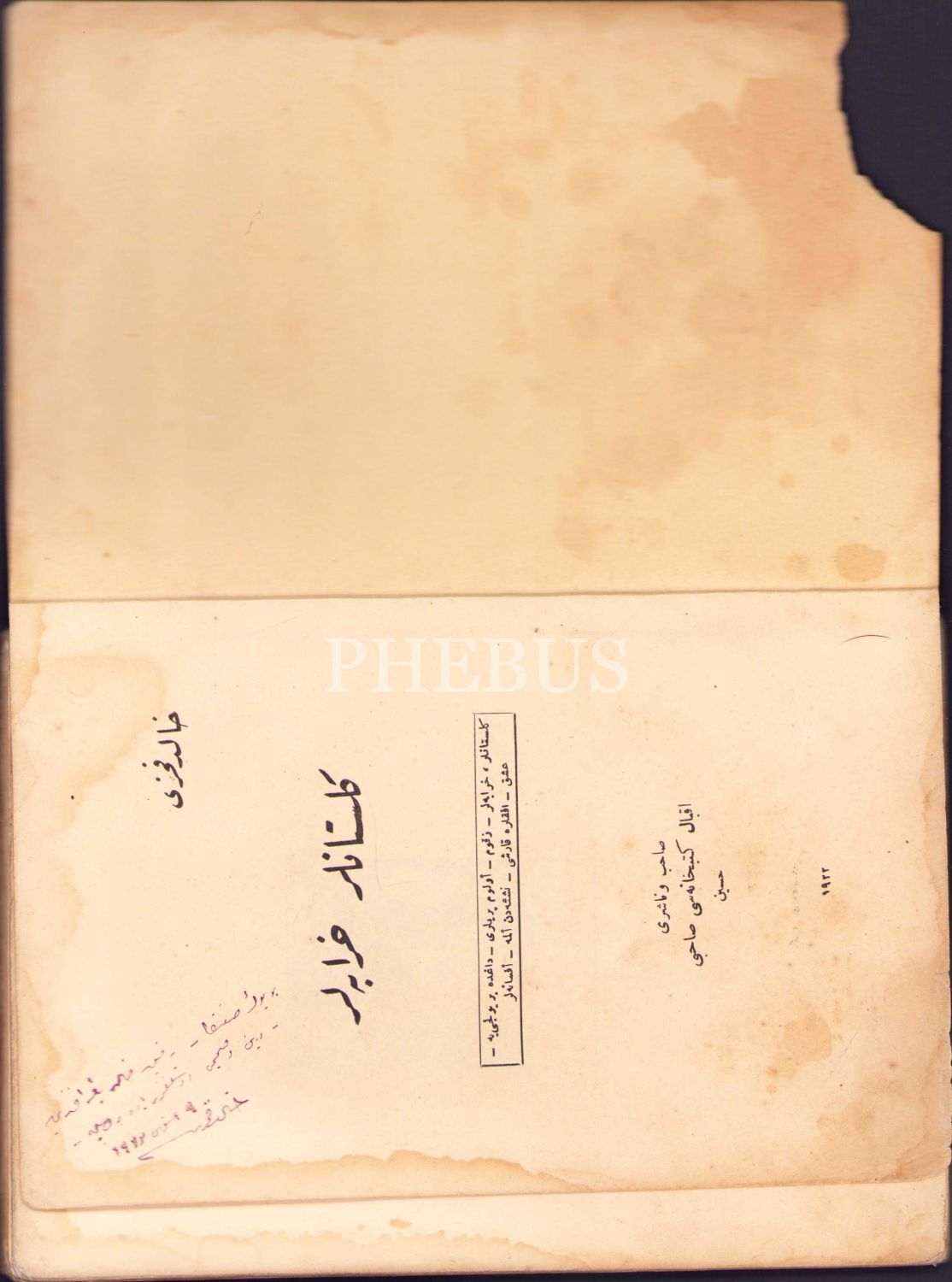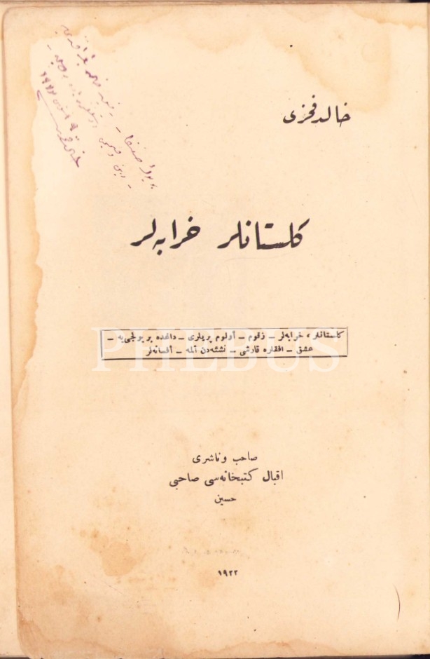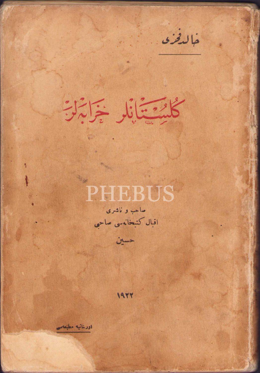 Halid Fahri'nin [Ozansoy] İthaflı ve İmzalı Osmanlıca "Gülistanlar Harabeler -Şiir-" Orhaniye Matbaası 1922, 175 sayfa, bazı sayfalar kesik ve yıpranmış halde, 13x19 cm