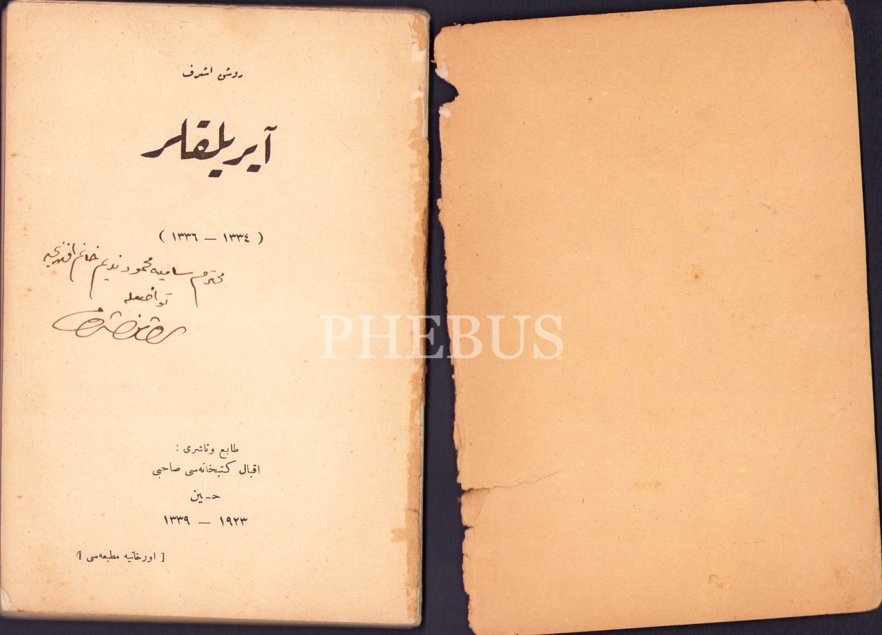 Ruşen Eşref'ten İthaflı ve İmzalı Osmanlıca "Ayrılıklar" Kitabı, Orhaniye Matbaası 1923, 135 sayfa, ön kapağı kopuk ve sayfaları yıpranmış hâliyle, 13x19 cm