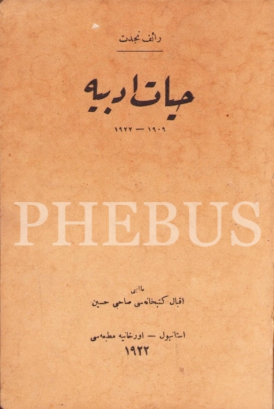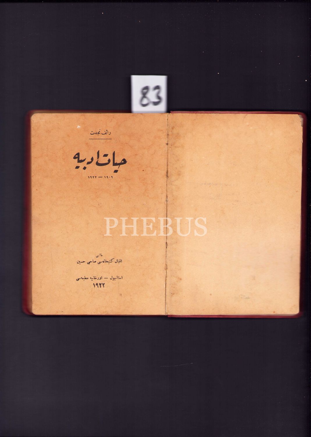 Raif Necdet'den [Kestelli] Namık Kemal'in Oğlu Ali Ekrem'e [Bolayır] İthaflı ve İmzalı Osmanlıca "Hayat-ı Edebiyye" Kitabı, İstanbul Orhaniye Matbaası 1922, 382 sayfa, sayfaları yorgun hâliyle, 14x20 cm
