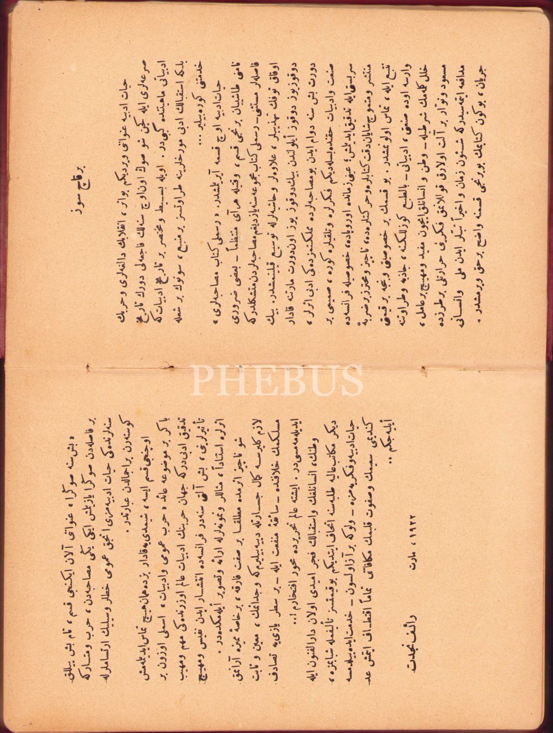 İthaf, "Üstad edib muhterem Ali Ekrem Bey hazretlerine takdime-i naçizanemdir. Raif Necdet" 16 Mayıs 1922" şeklindedir.
