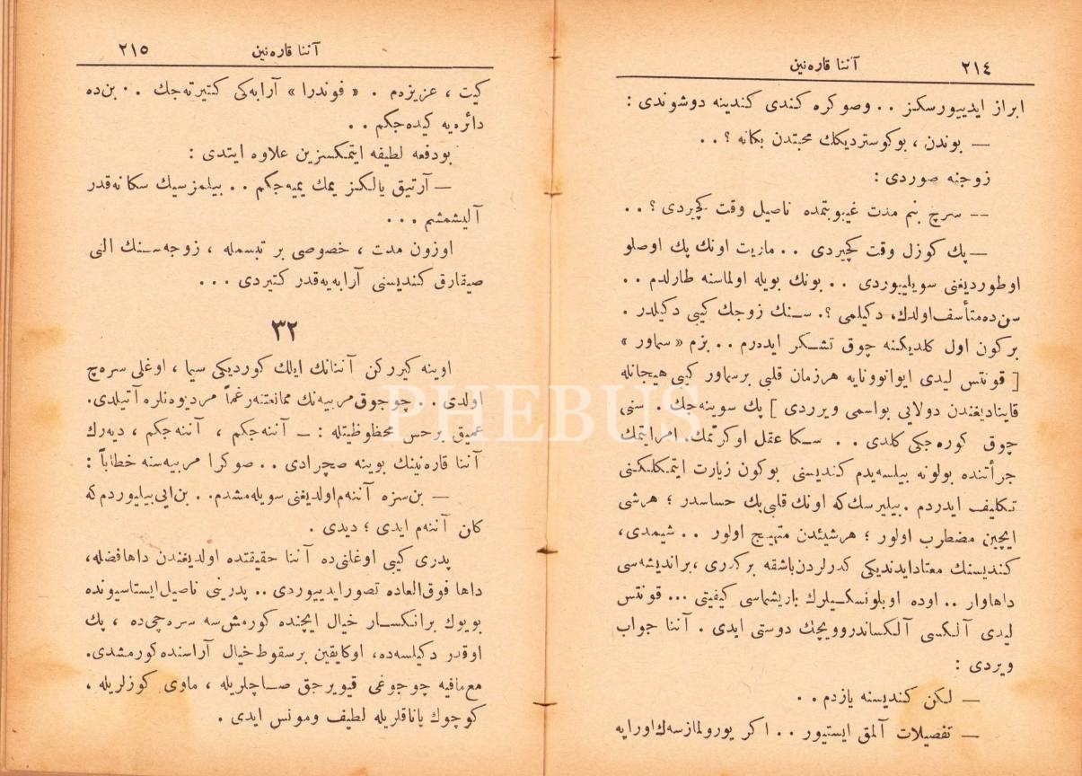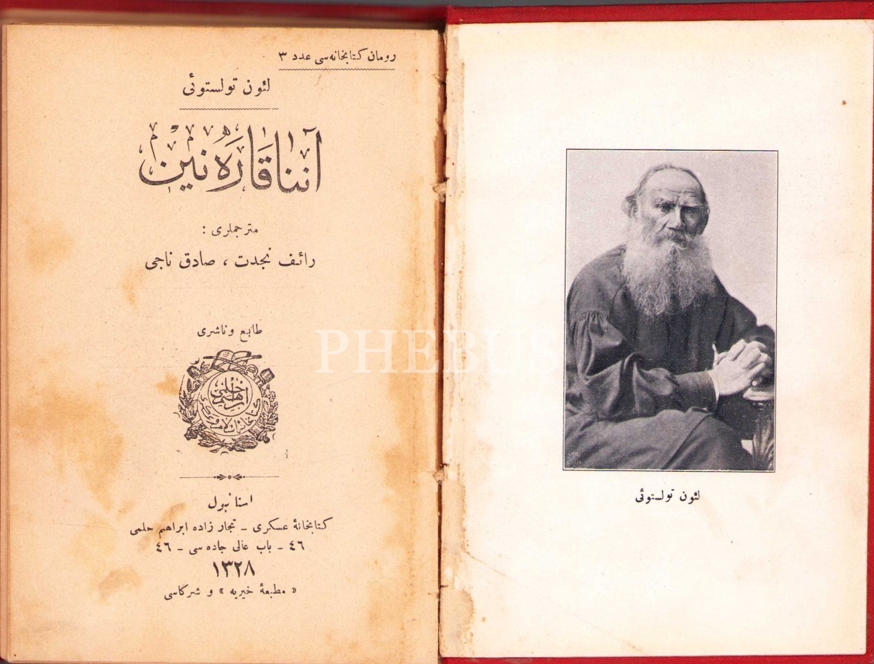 Raif Necdet ve Sadık Naci'nin Tercüme Ettiği Lev Tolstoy'dan Osmanlıca "Anna Karenina", Matbaa-i Hayriye 1328, 320 sayfa, cildi yıpranmış hâliyle, 12x18 cm