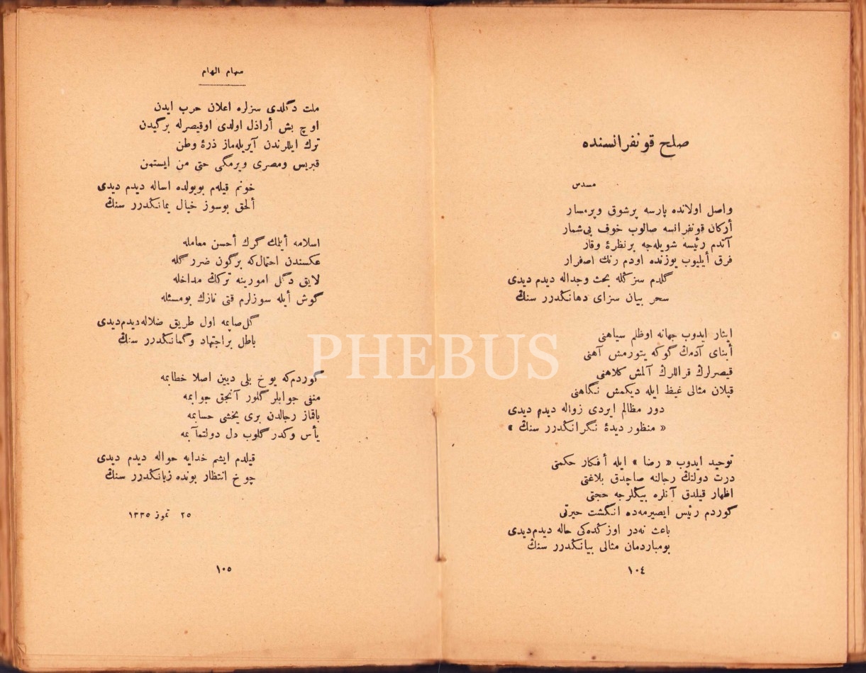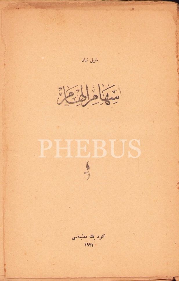 Halil Nihad'ın [Boztepe] Yayınlanan Osmanlıca İlk Şiir Kitabı: Siham-ı İlham, Mahmud Bey Matbaası, 1921, 254 sayfa, Kapak: Münif Fehim,sayfaları açılmamış ve kenarları yıpranmış hâliyle, 12x19 cm