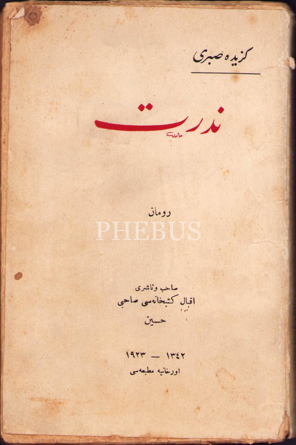 Güzide Sabri'den [Aygün] "Nedret -Roman-", Orhaniye Matbaası 1923, 291 sayfa, sayfaları yıpranmış hâliyle, 13x19 cm