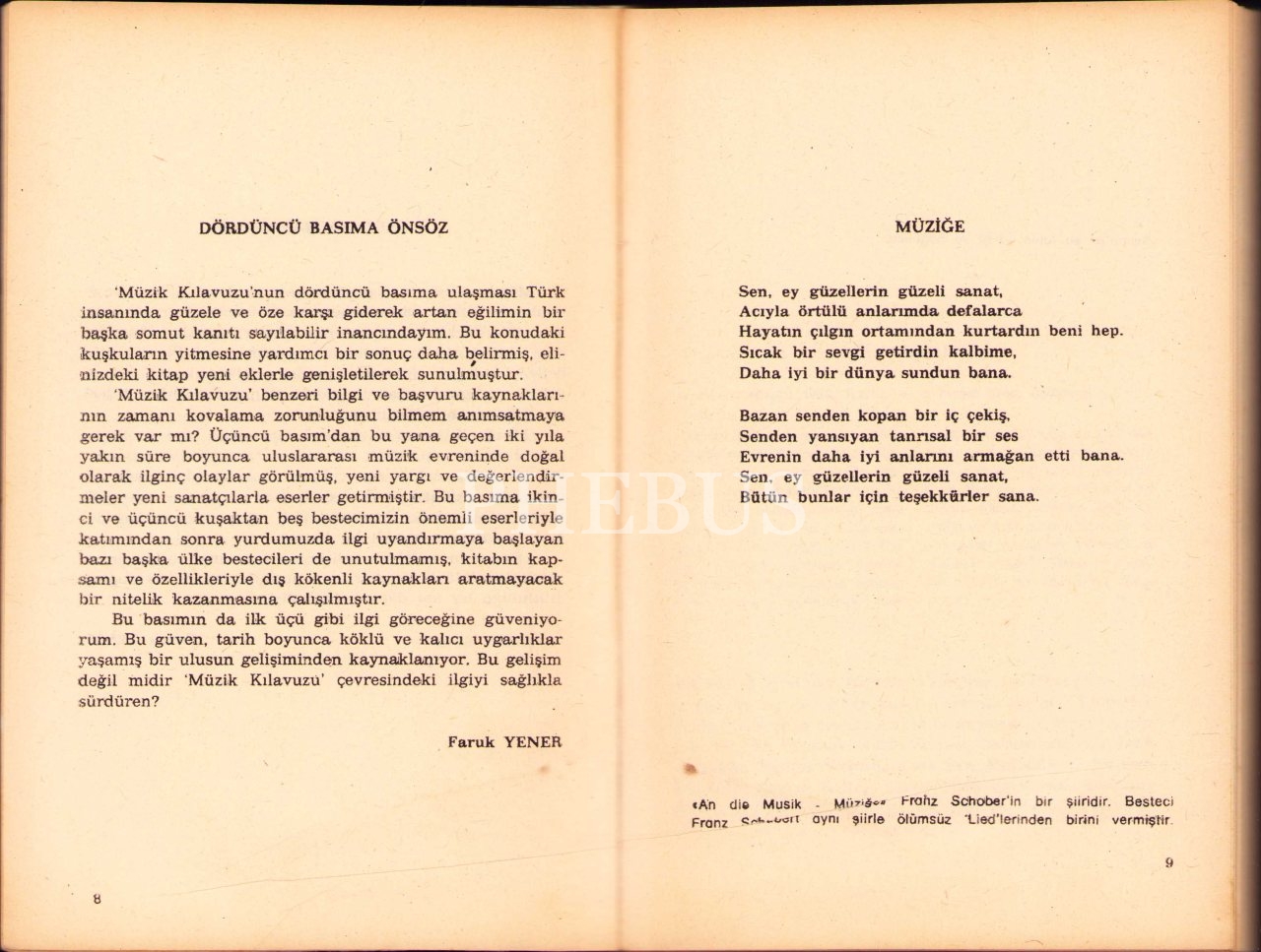 İstanbul Radyosunun Kurucularından Müzik Eleştirmeni Faruk Yener'den İthaflı ve İmzalı "Müzik Kılavuzu", Bilgi Yayınevi, Dördüncü Baskı, 1983, 473 sayfa, ön kapağı yorgun hâliyle, 13x19 cm