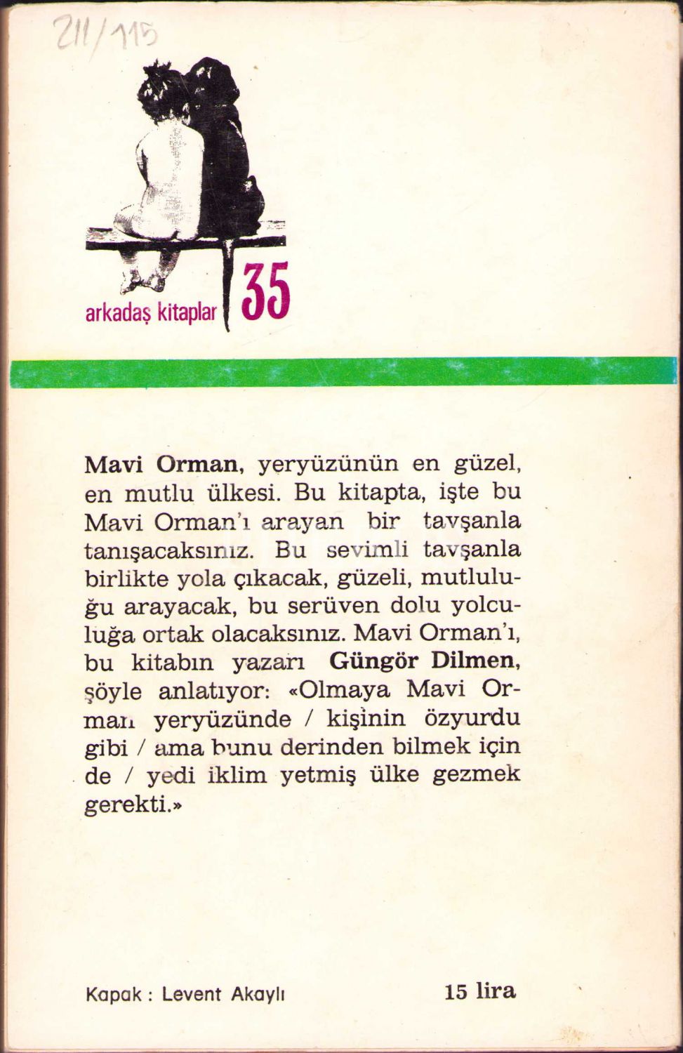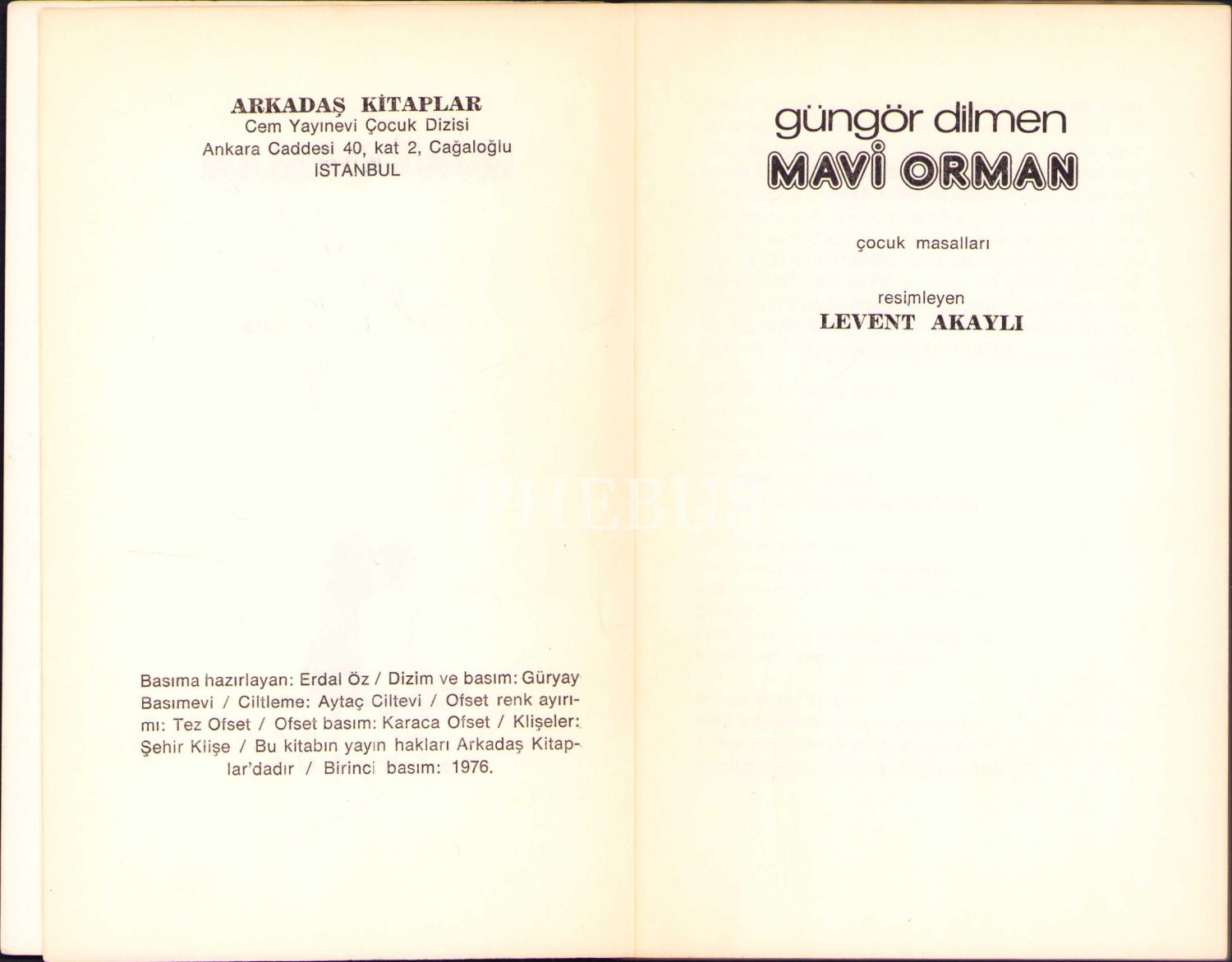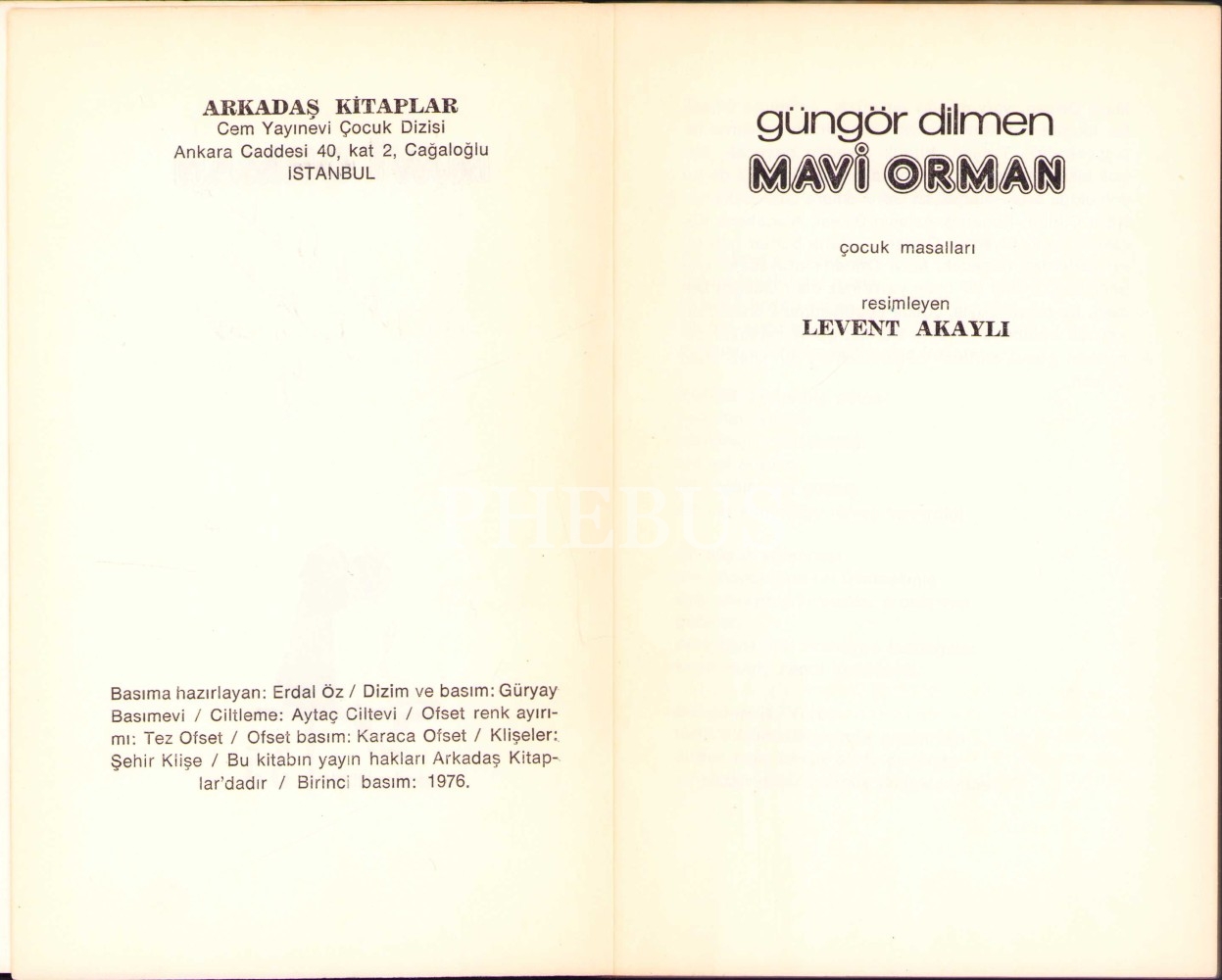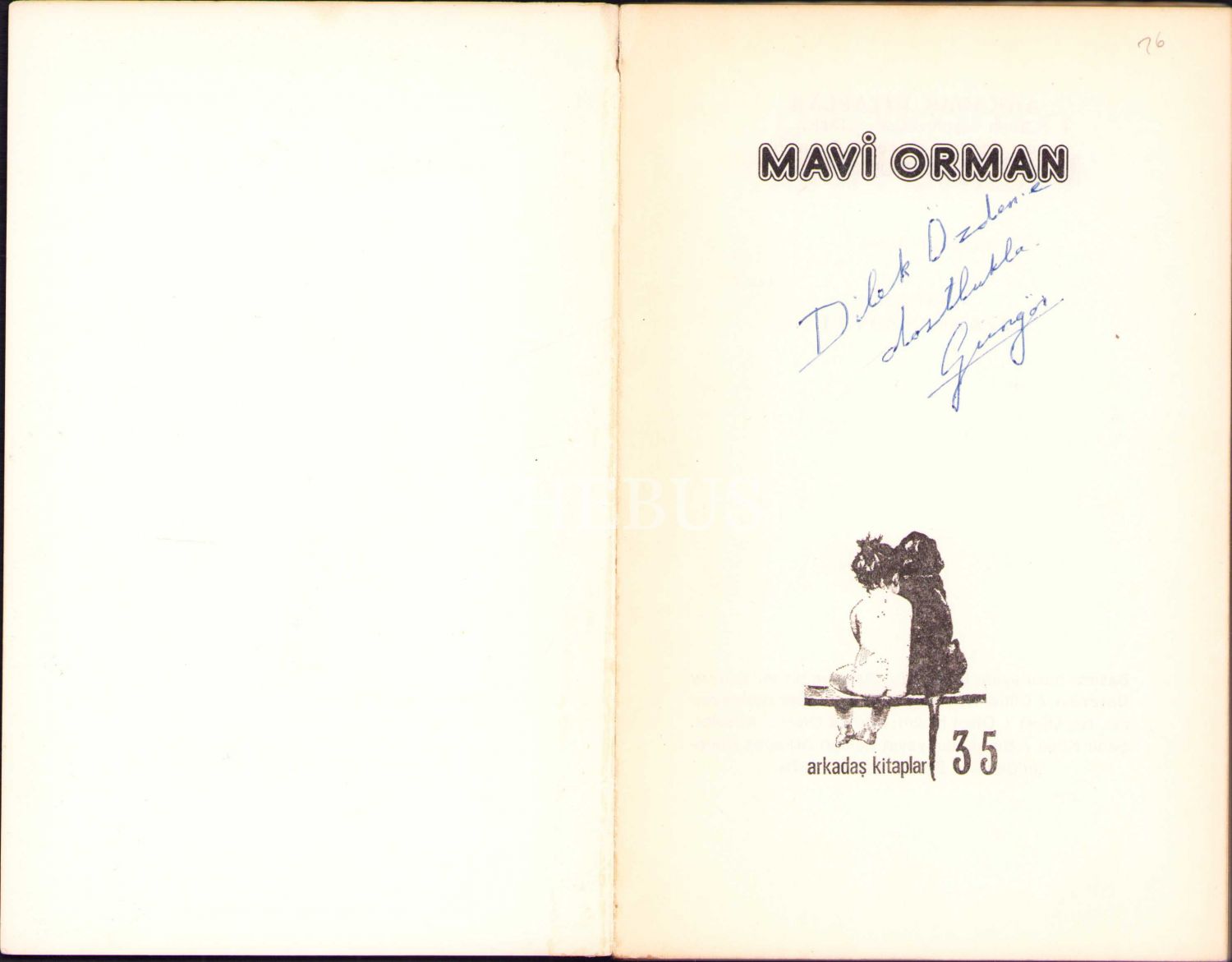 Güngör Dilmen'den İthaflı ve İmzalı "Mavi Orman" Kitabı, İlk Baskı, Cem Yayınevi Çocuk Dizisi, 1976, 103 sayfa, 12x19 cm