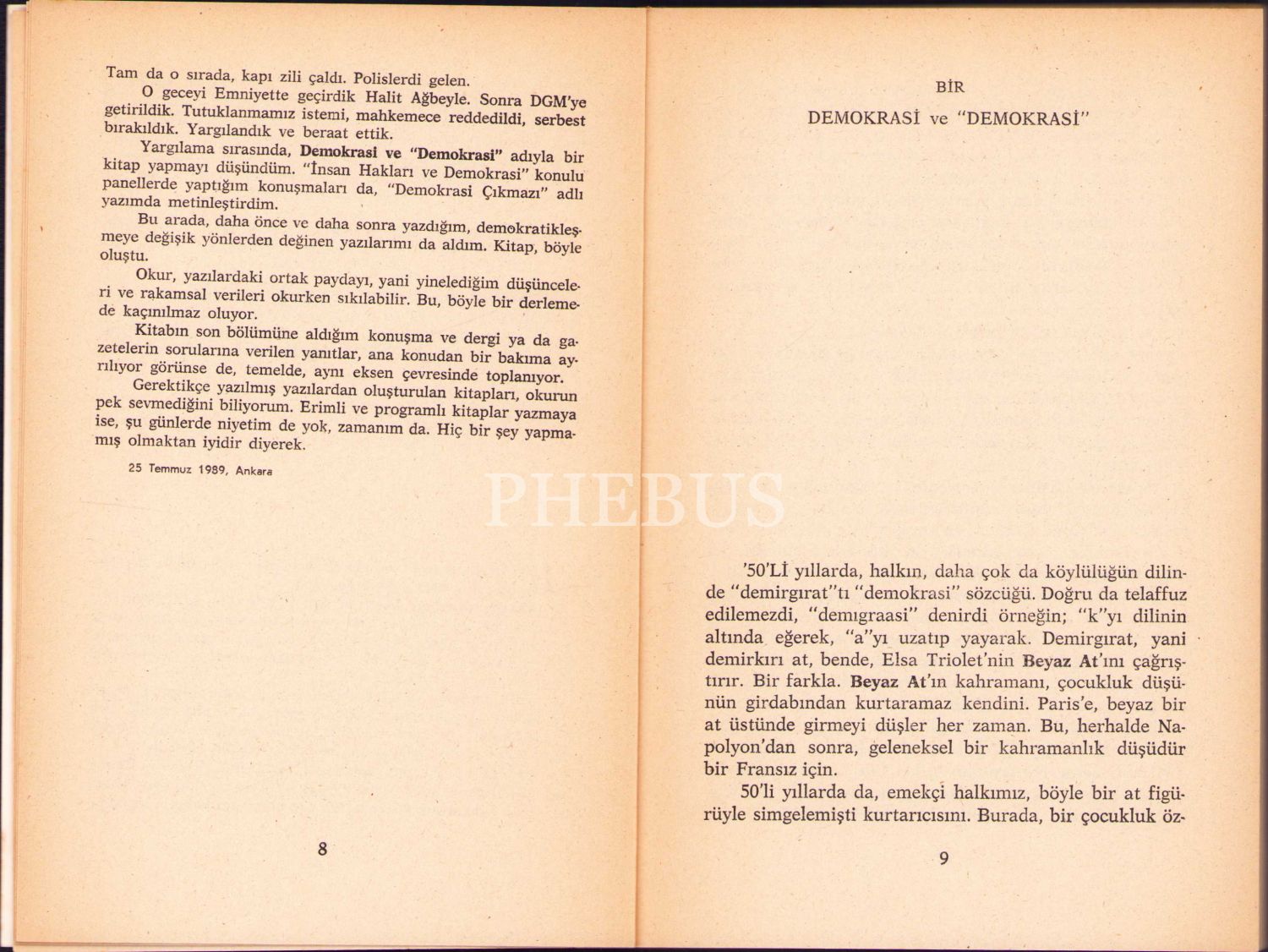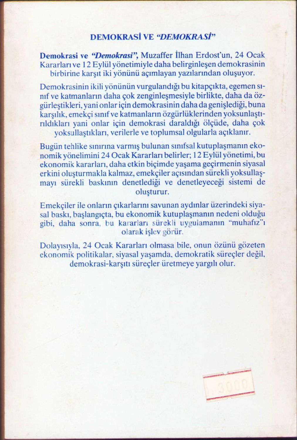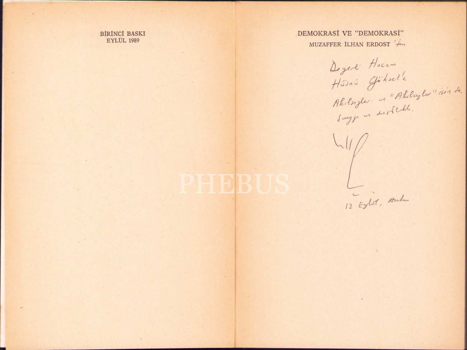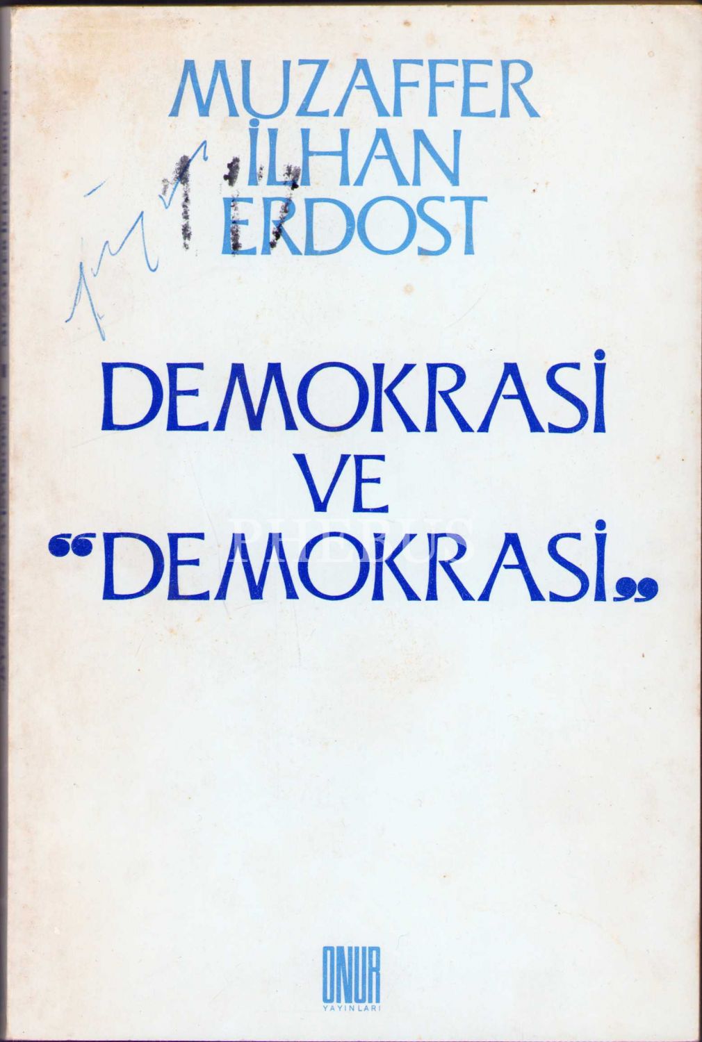 Muzaffer İlhan Erdost'tan İthaflı ve İmzalı "Demokrası ve Demokrasi", Birinci Baskı, Onur Yayınları, Eylül 1989, 143 sayfa, ön kapağı yorgun hâliyle, 13x19 cm