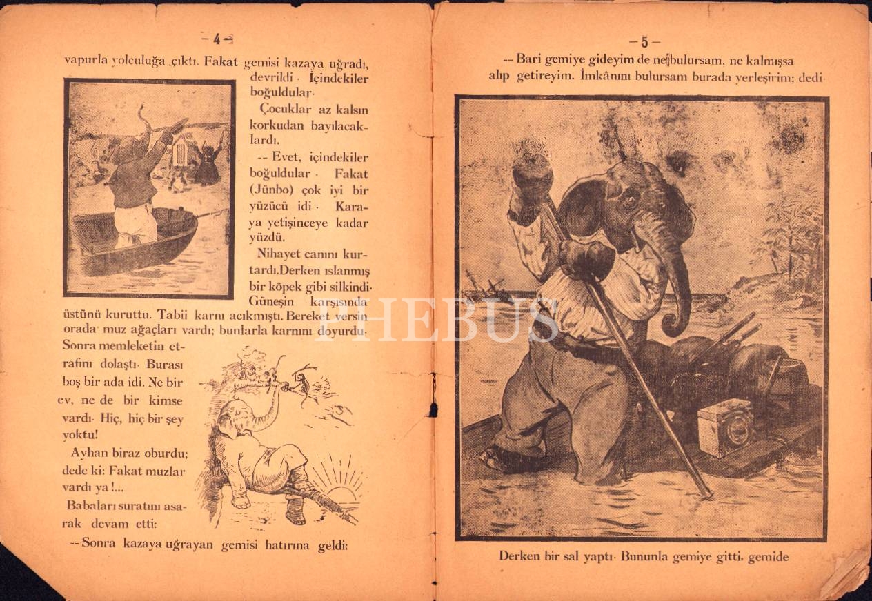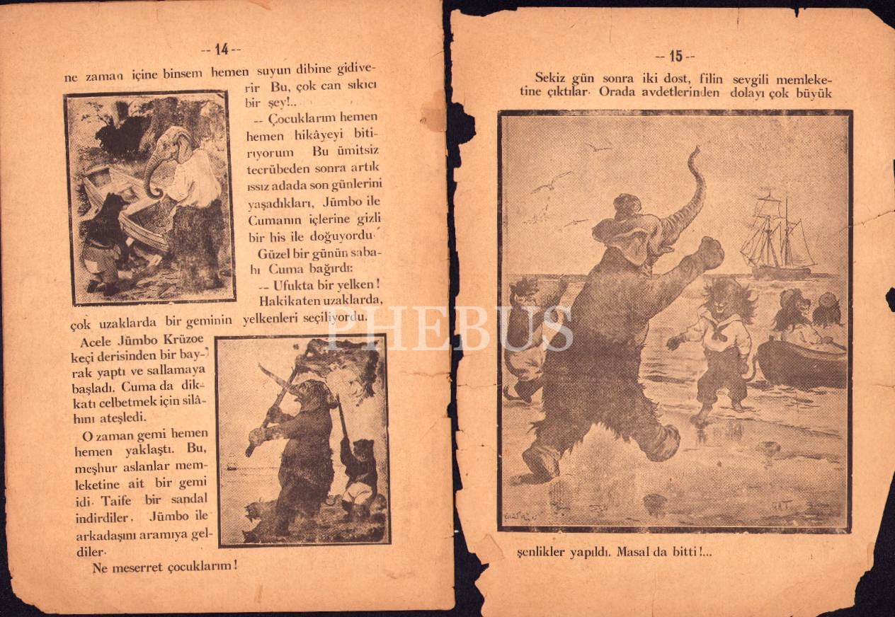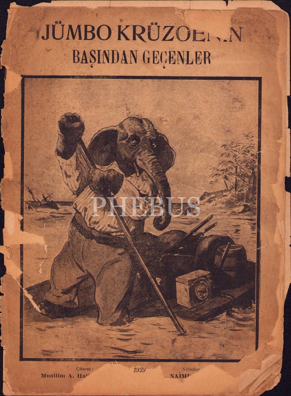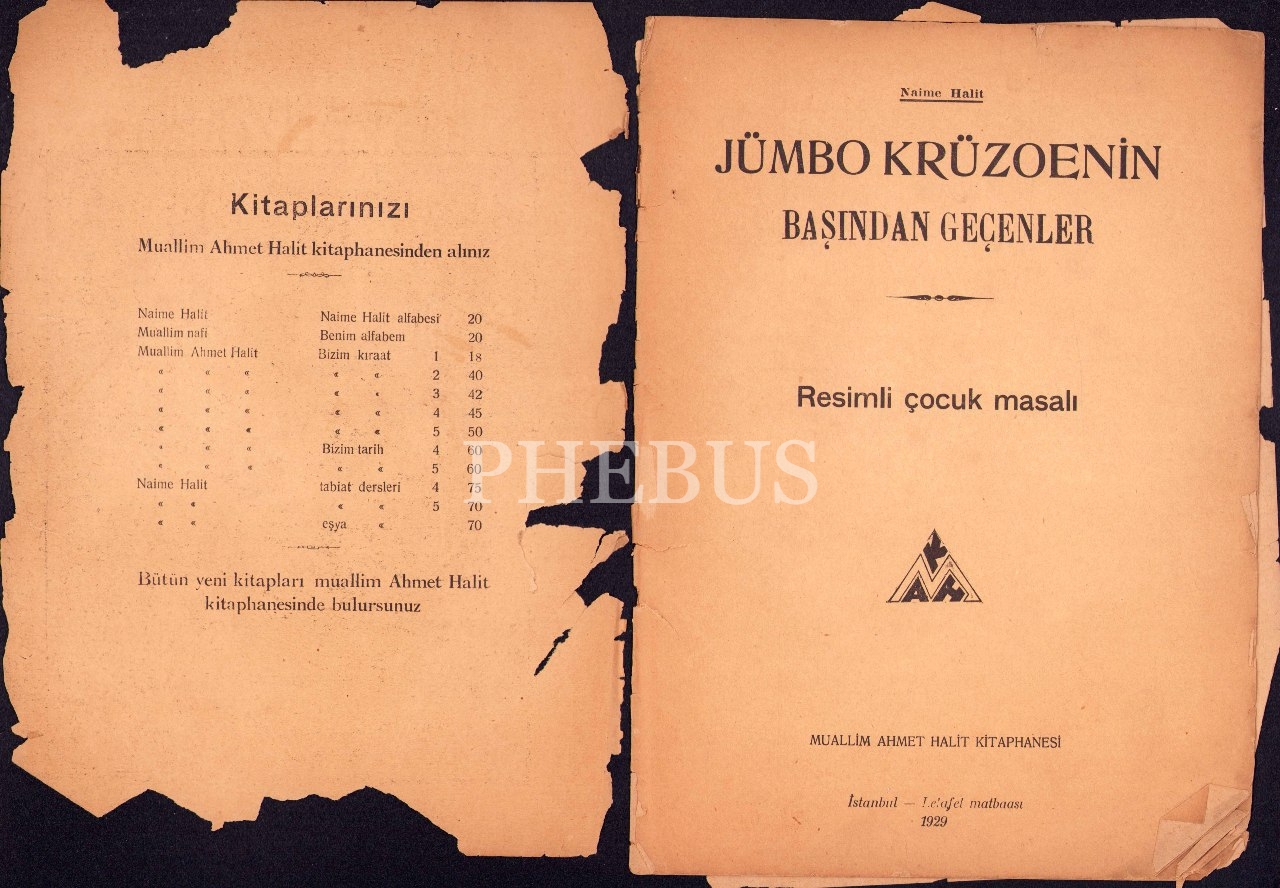 Jümbo Krüzoen'in Başından Geçenler, Resimli Çocuk Masalı, Muallim Ahmet Halit Kitaphanesi, İstanbul- Letafet Matbaası, 1929,16 sayfa, 21x28 cm