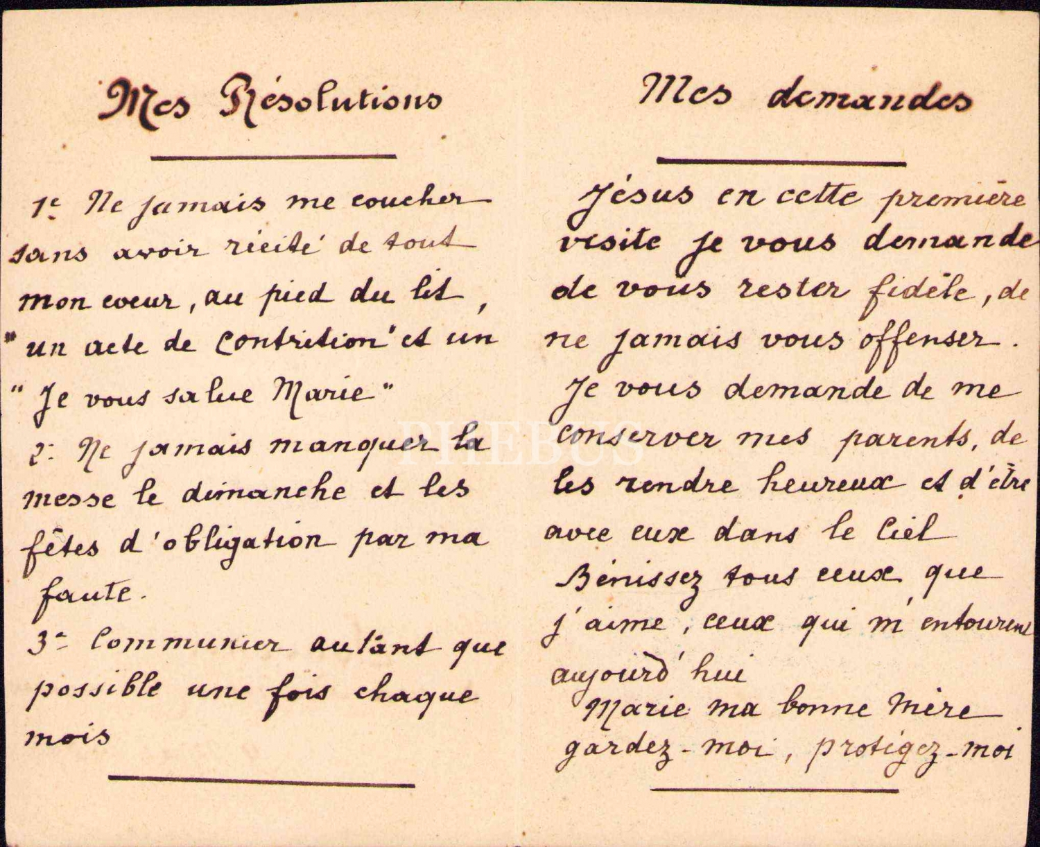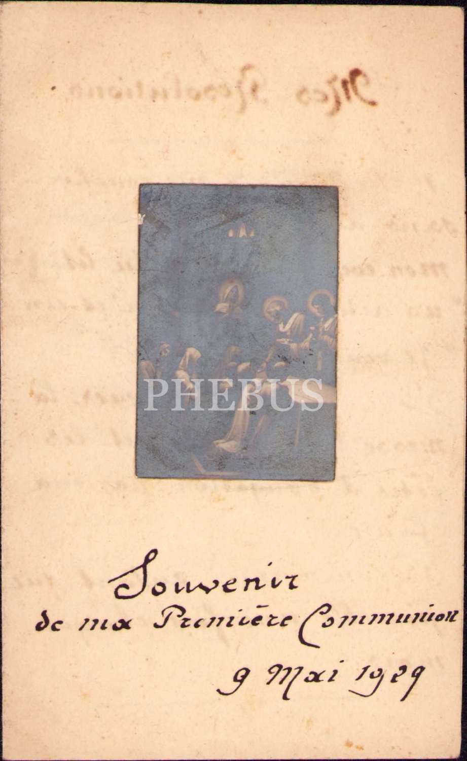 1929 tarihli Fransızca mektup, üzerine dinî tasvir bulunan bir fotoğraf yapışık halde, 14x17 cm