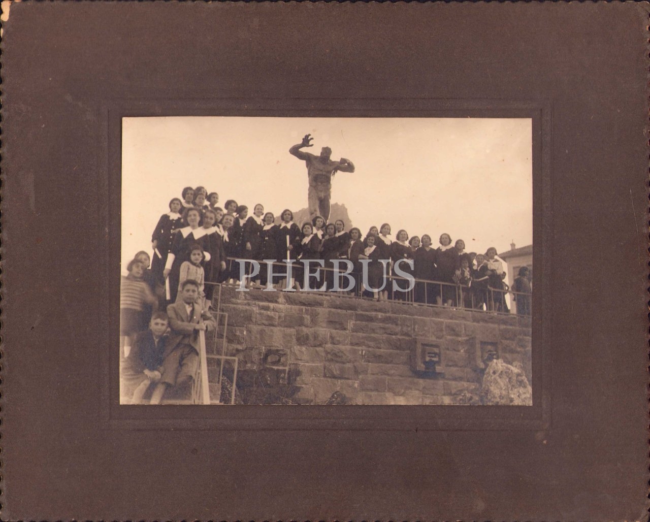 Afyon'da bulunan Büyük Utku Anıtı önünde poz veren öğrenciler, paspartulu, foto: 12x17 cm