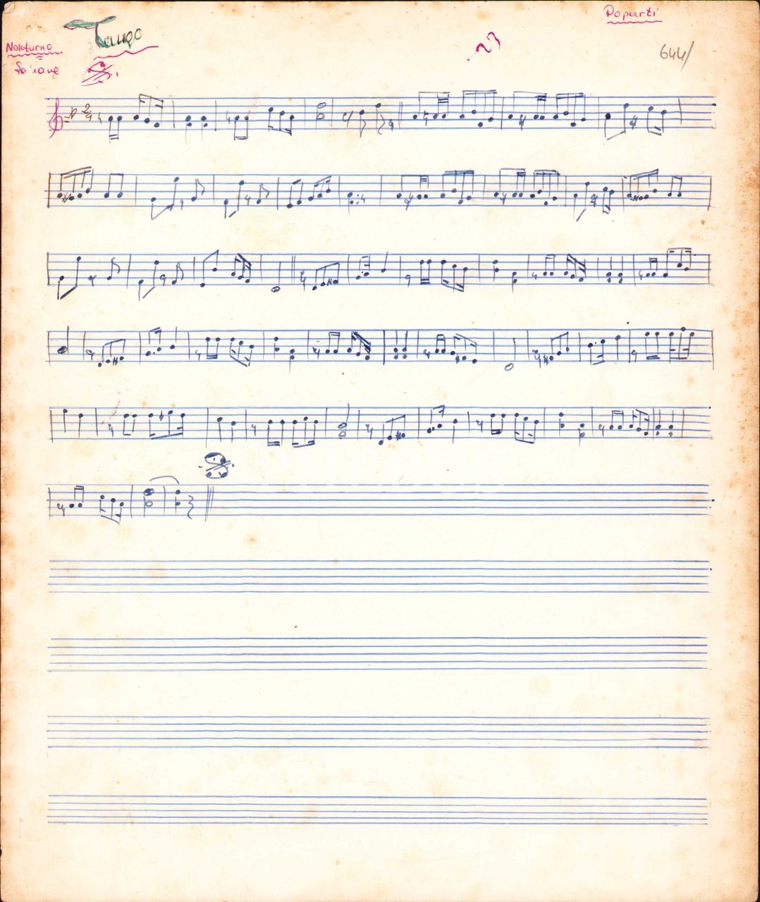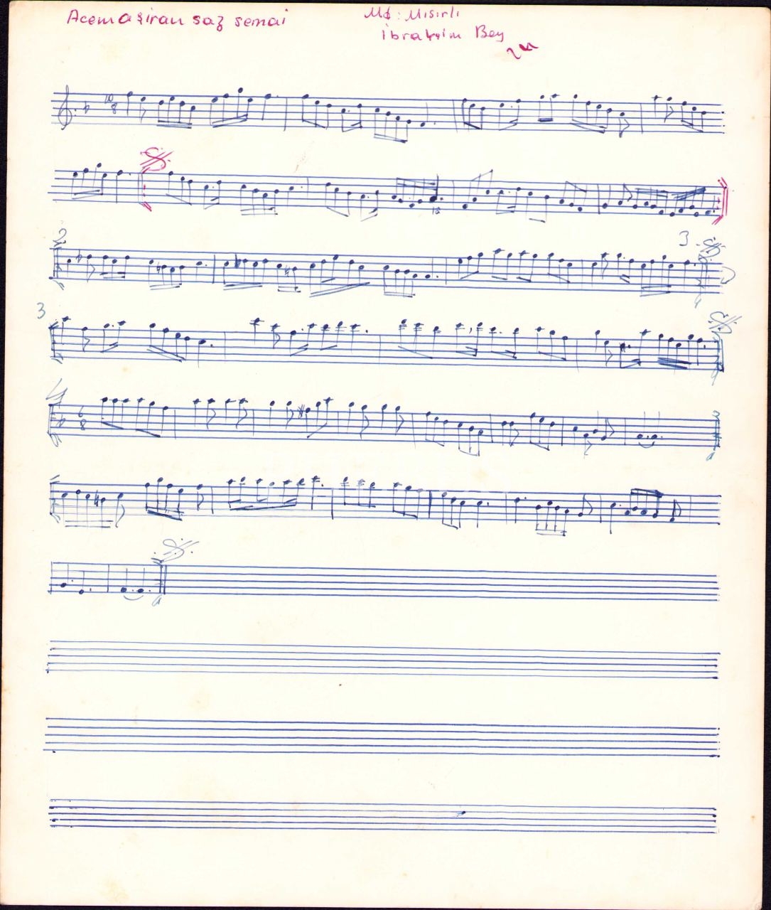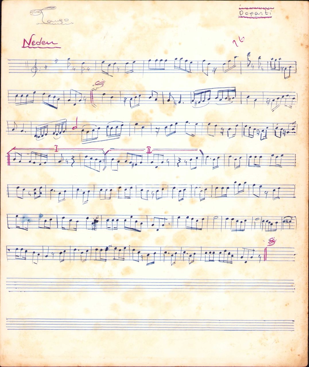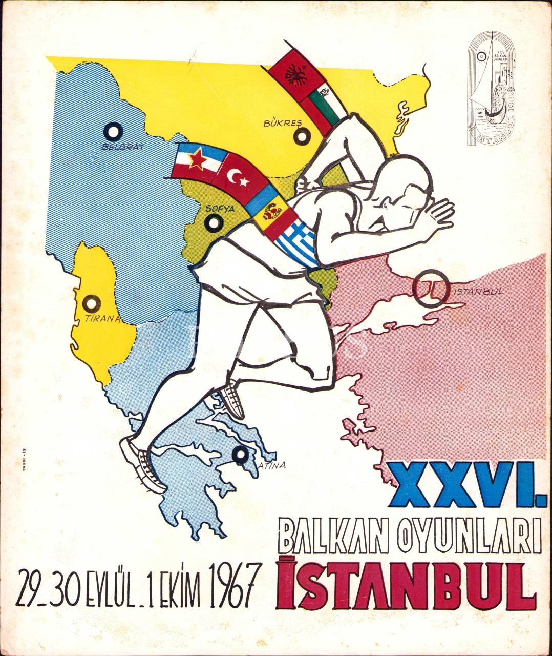 Ön yüzünde 29-30 Eylül-1 Ekim 1967 Balkan Oyunları arka yüzünde el çizimi nota bulunan 3 adet kartonet, 24x29 cm, yıpranmış ve ortadan kırık haliyle