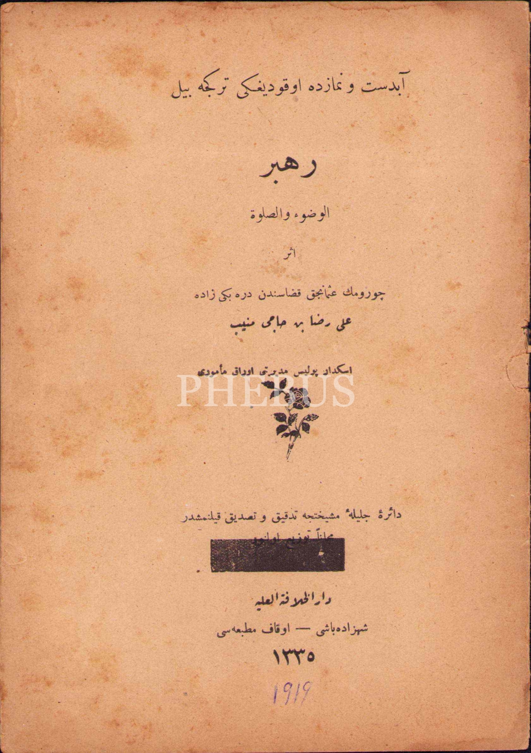 Osmanlıca Rehber [Abdest-Namaz], Ali Ziya bin Hacı Münib, Evkaf Matbaası, İstanbul 1335, 20 s., 14x20 cm, kapağı yıpranmış haliyle