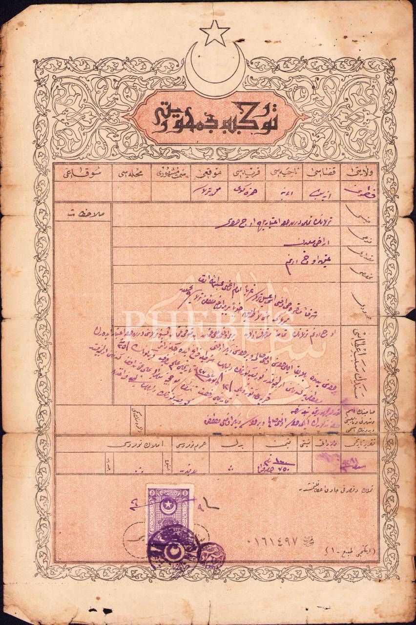 Osmanlıca Türkiye Cumhuriyeti tarla tapusu, Kastamonu 1928, 22x33 cm, yıpranmış haliyle