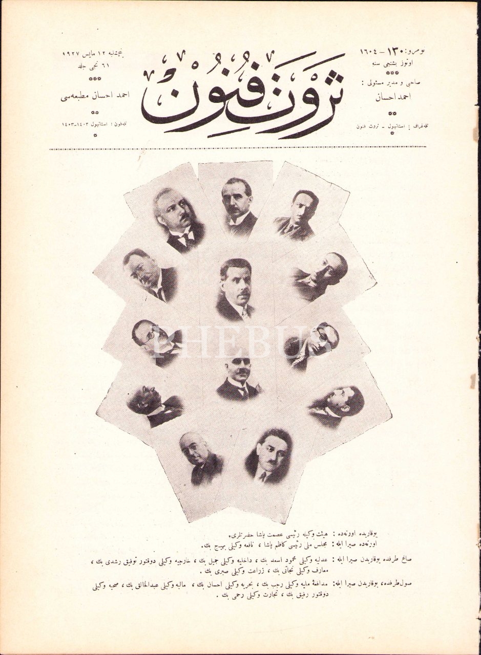 Osmanlıca Servet-i Fünûn dergisi, sayı: 1604-130, 12 Mayıs 1927, kapakta İsmet Paşa vd. kabine üyelerinin fotoğrafı mevcut, 24x33 cm, ciltten çıkma