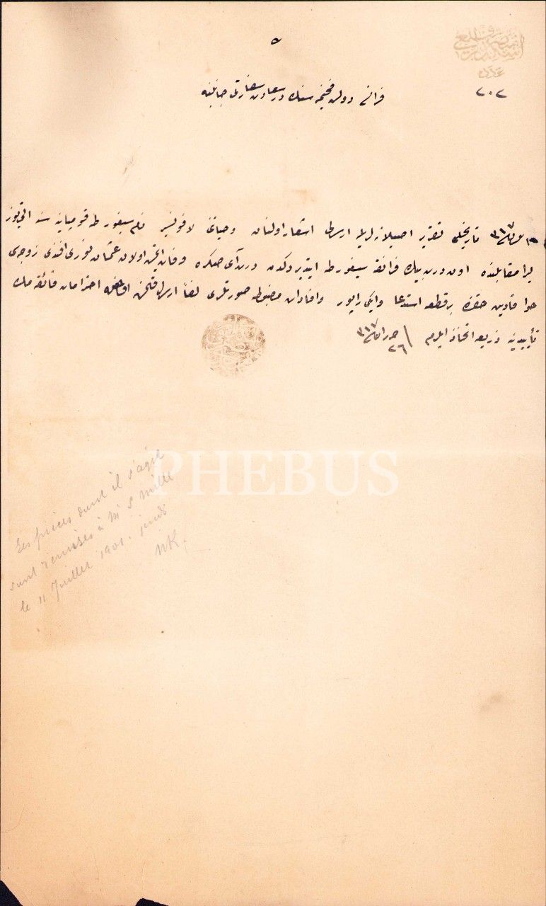 Fransa Büyükeliçiliği'ne gönderilen 1317 tarihli evrak, 19x32 cm, alt kenarı yıpranmış haliyle