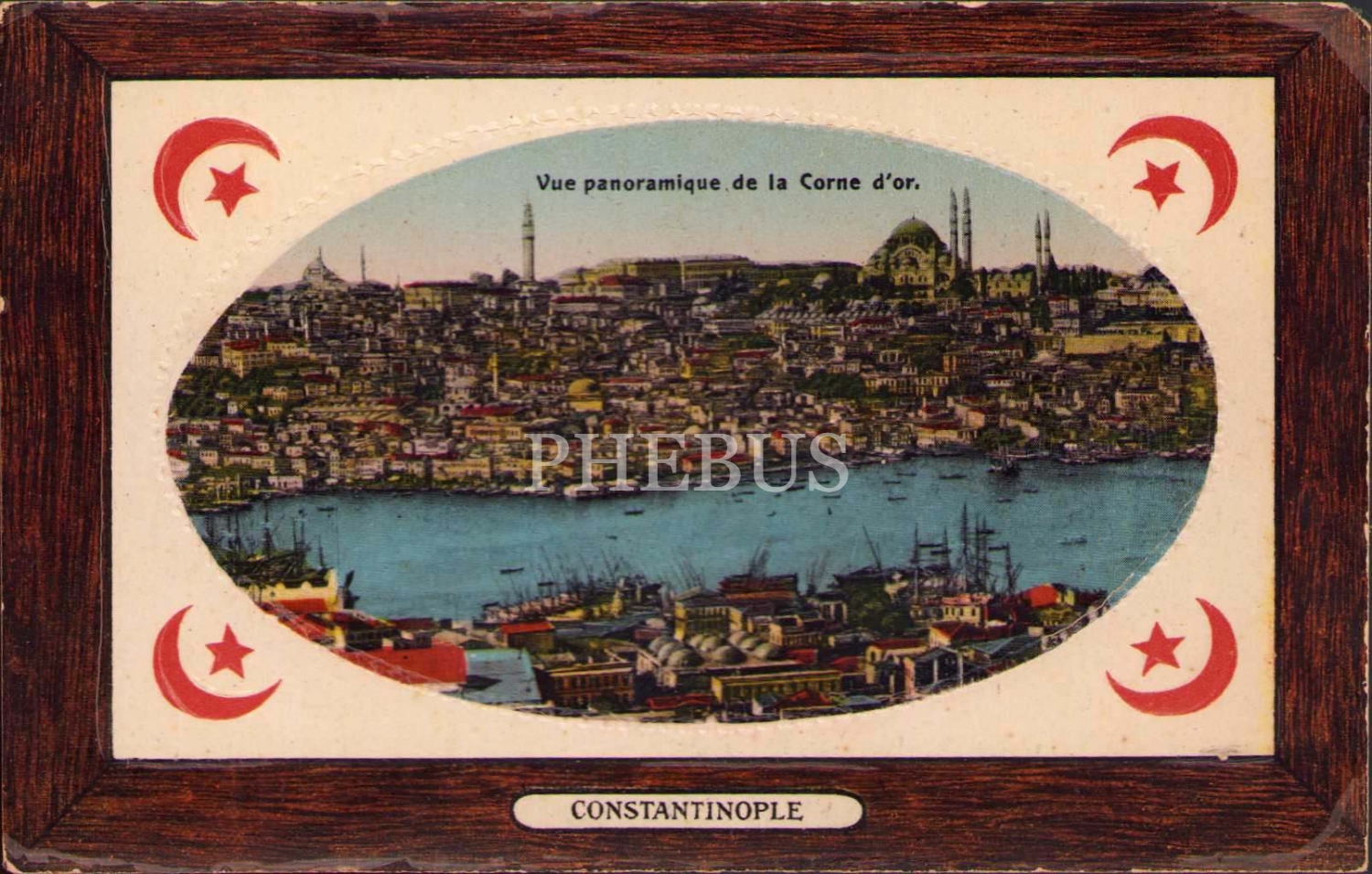 Haliç genel görünümlü gofre kartpostal, Constantinople, ed. IMAC, yer yer soyulmuş haliyle