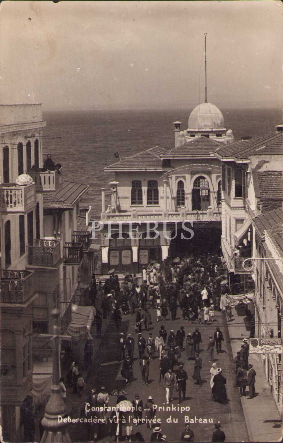 Osmanlıca "Erkek ve Kadın" yazılı kuaför tabelasının görüldüğü Büyükada fotoğrafı, Constantinople, postadan geçmiş, yorgun haliyle