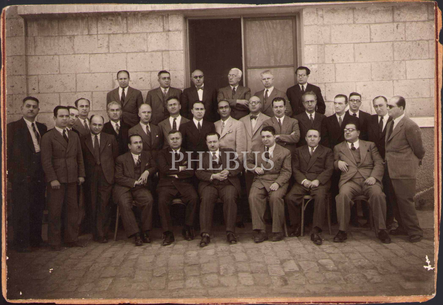 Topluluk hatıra fotoğrafı, kartona yapışık, 12x17 cm, yıpranmış haliyle
