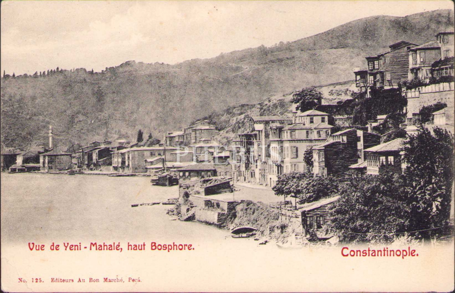 Yeni Mahalle-Boğaz, Constantinople, ed. Au Bon Marche, Pera, alt köşesi kırık haliyle