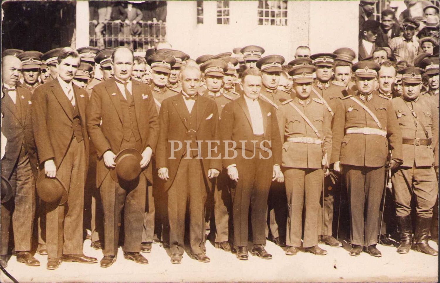Devlet ileri gelenleri ve subaylar hatıra fotoğrafı, bir kenarı hafif soyulmuş haliyle