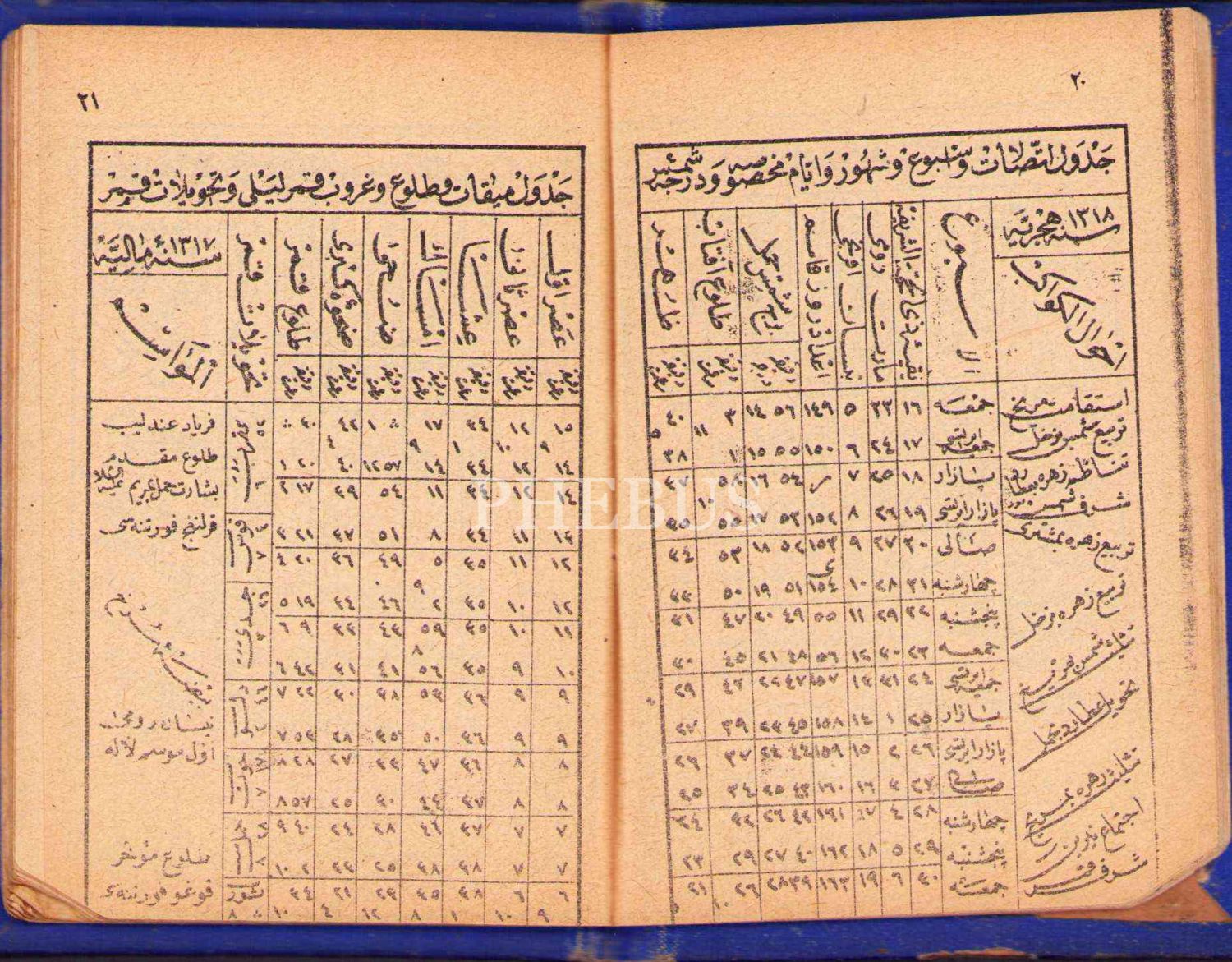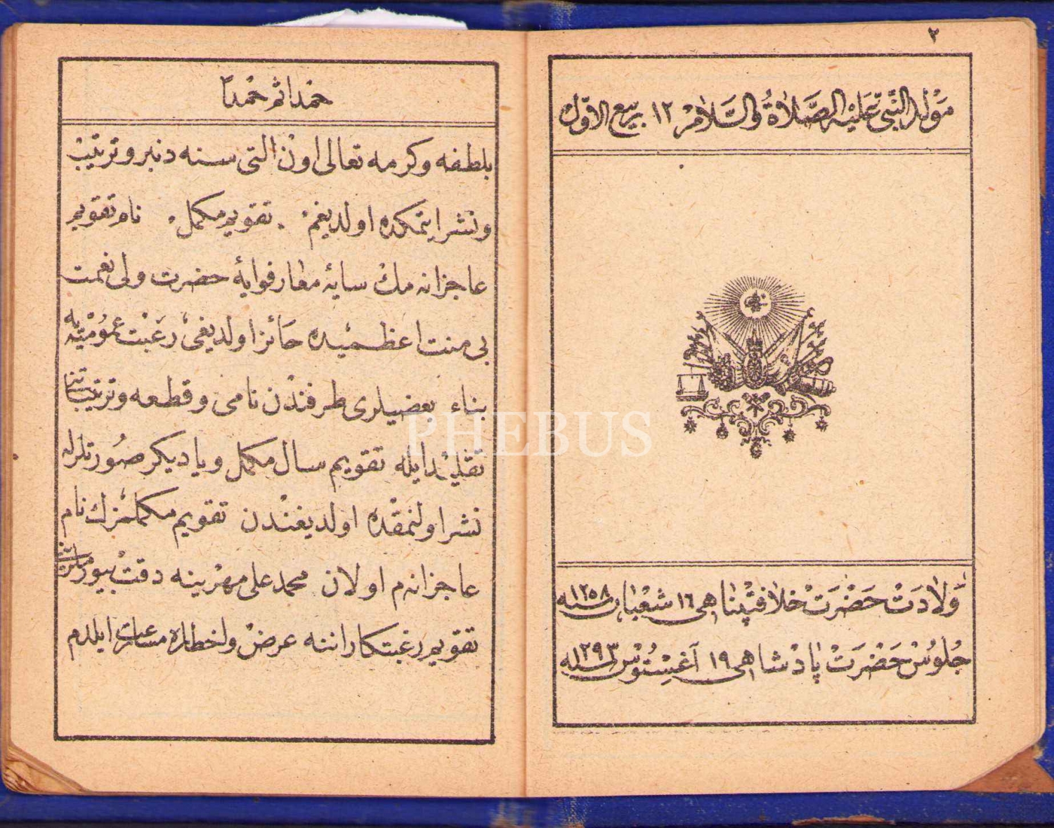 1316 tarihine ait Evkat-nümâ [Vakit çizelgesi], 64 s., 8x12 cm, sayfa köşeleri yırtılmış haliyle