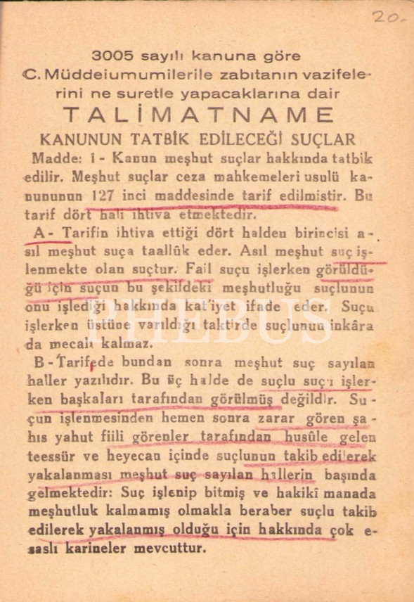 C. Müddeiumumiler [Cumhuriyet Savcıları] ile Zabıtanın Vazifelerine Dair Talimatname, İst. Cezaevi Matbaası, 1936, 16 s., 13x17 cm