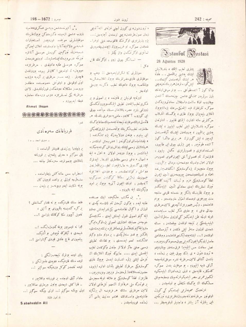 Osmanlıca Servet-i Fünûn dergisi, sayı: 1672-198, 30 Ağustos 1928, 24x32 cm, ciltten çıkma
