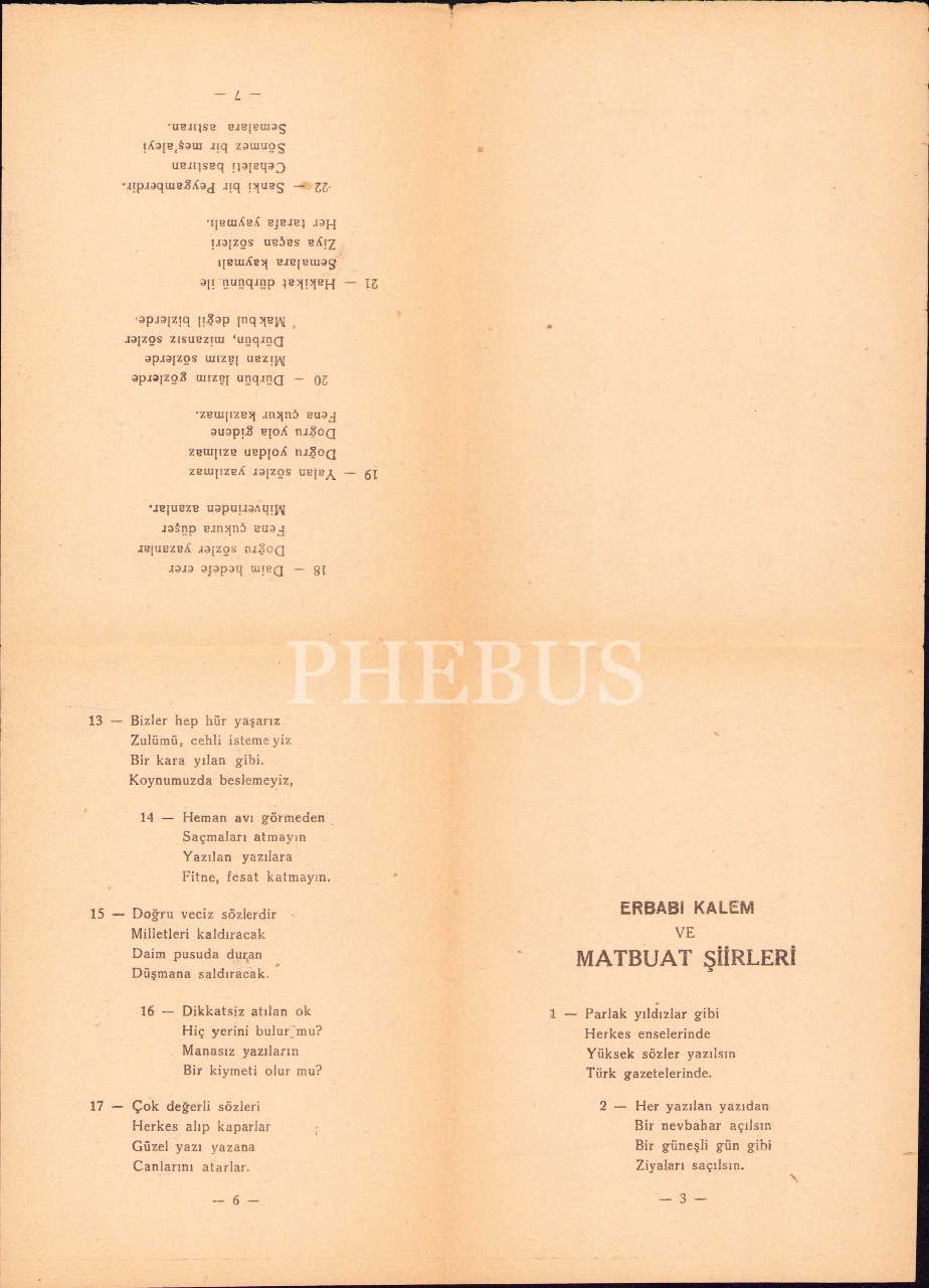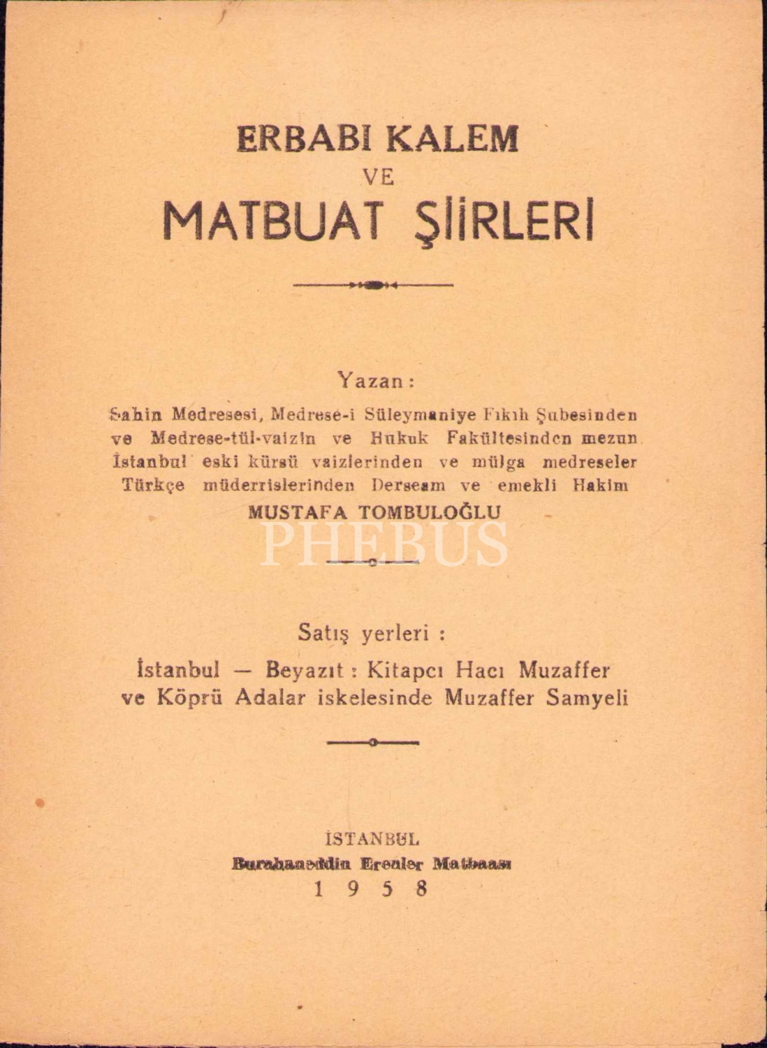 Erbabı Kalem ve Matbuat Şiirleri, Mustafa Tombuloğlu, Burahaneddin Erenler Matbaası, İstanbul 1958, 8 sayfa, 13x17 cm, sayfaları açılmamış haliyle