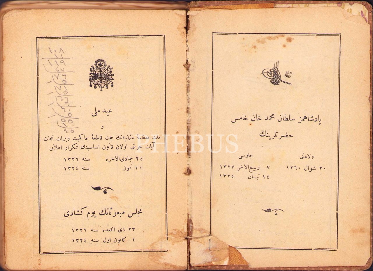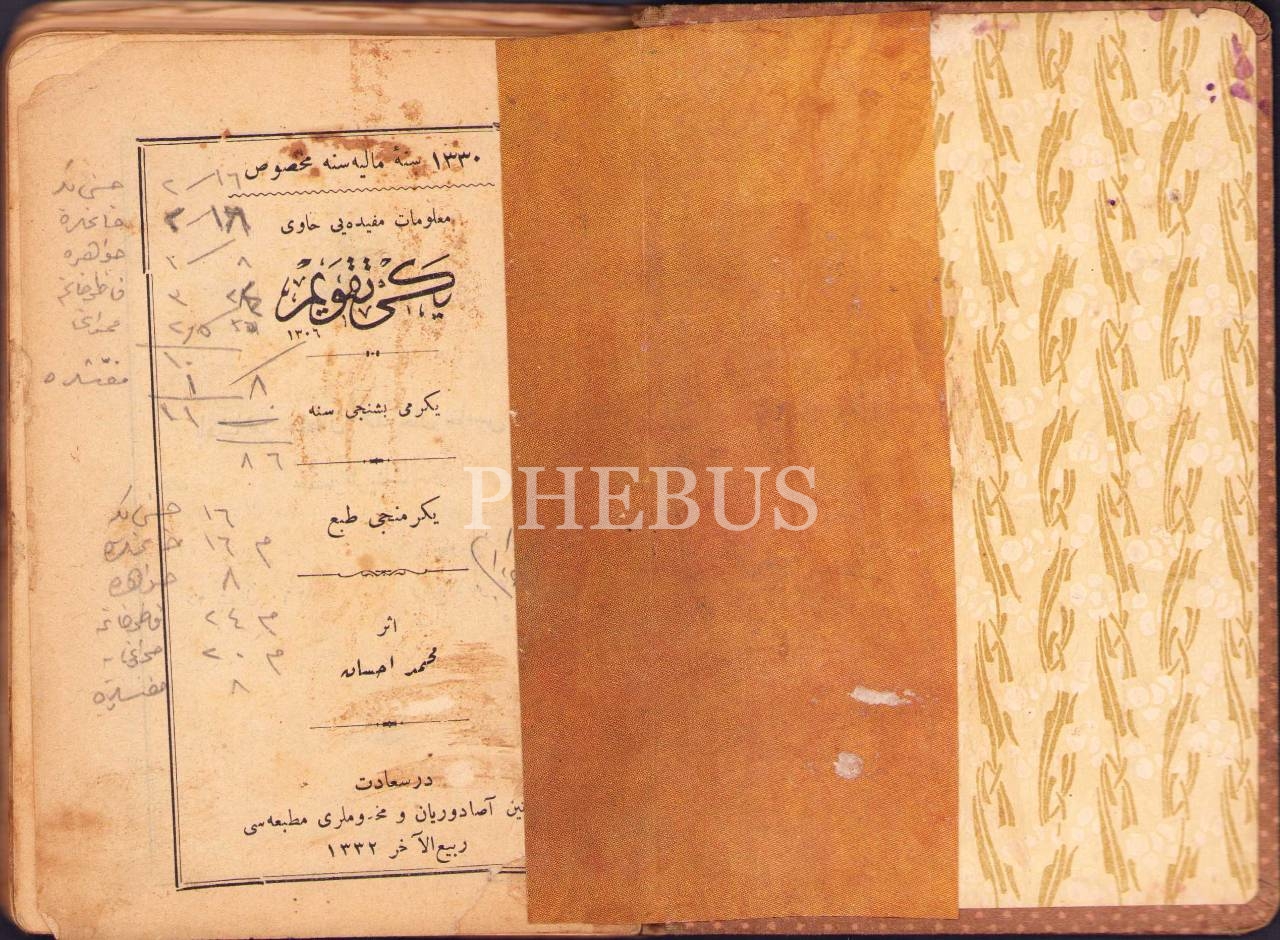 Osmanlıca 1330 Senesine Mahsus Muhtıralı Yeni Takvim, Mehmed İhsan, Artin Asaduryan ve Mahdumları Matbaası, Dersaadet [İstanbul] 1332, 248 s., 11x16 cm, yıpranmış haliyle
