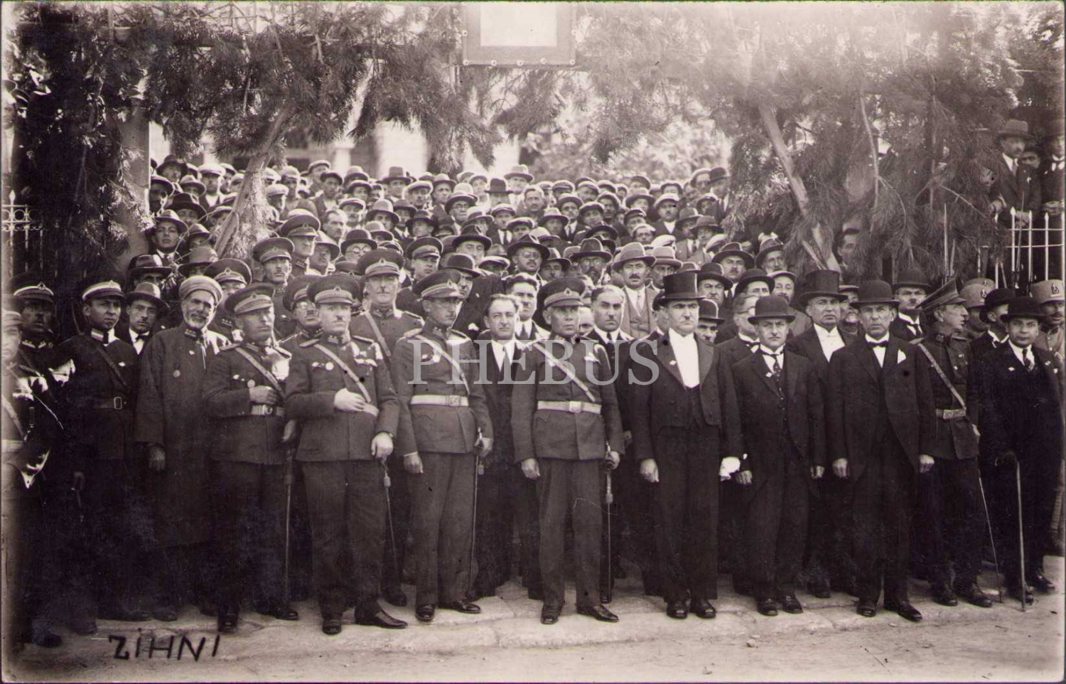 1932 yılı Cumhuriyet Bayramı kutlamasından toplu hatıra fotoğrafı, Kastamonu, Foto Zihni, arkası Osmanlıca yazılı