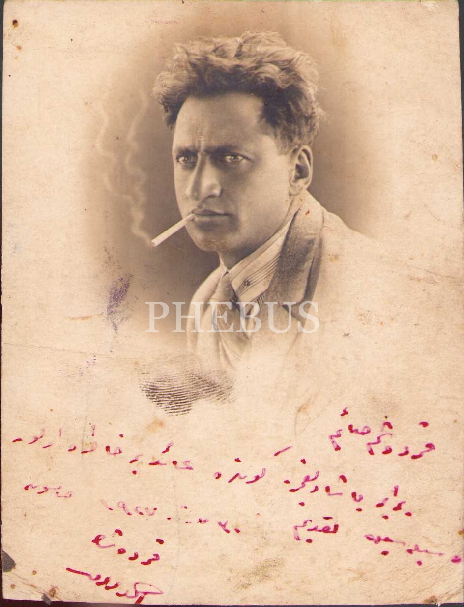 Sigarası ile poz veren beyefendi fotoğrafı, Osmanlıca ithaflı ve 1927 tarihli, 8x10 cm, yıpranmış haliyle