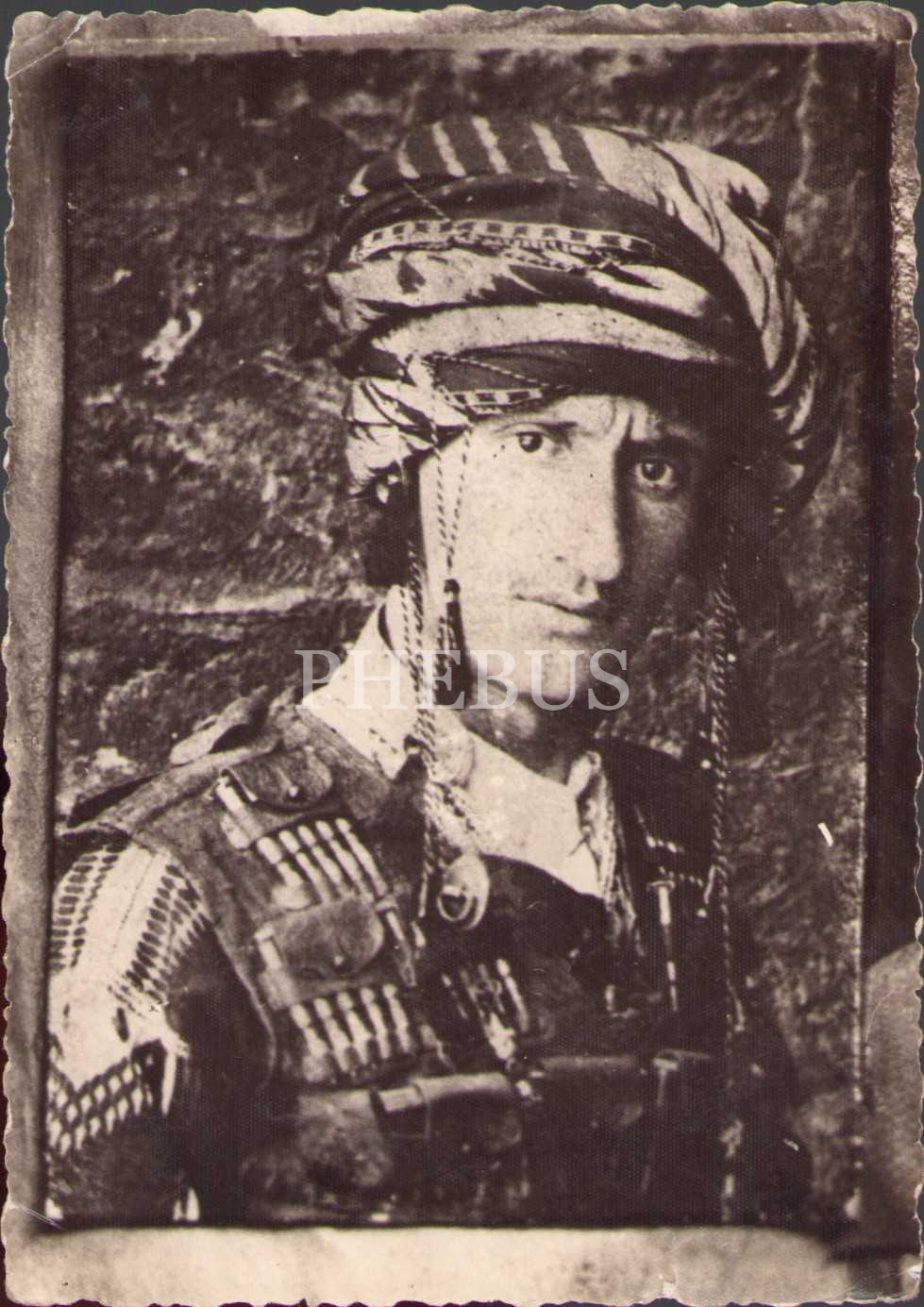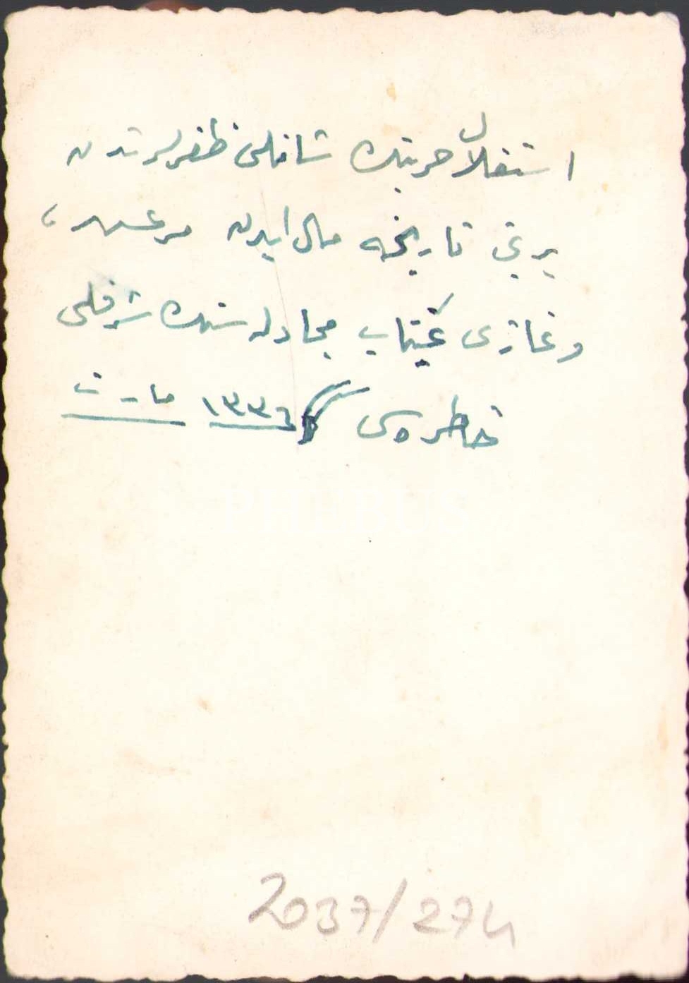 Yöresel kıyafetle poz veren beyefendi, arkası Osmanlıca yazılı ve 1336 tarihli, yıpranmış haliyle