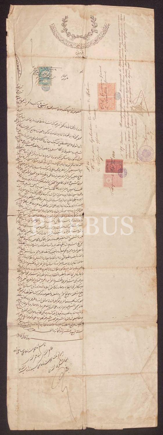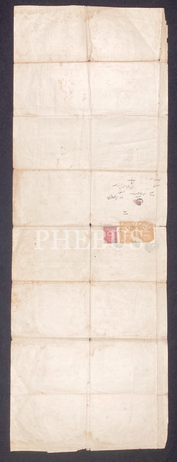 Osmanlıca 1329 tarihli hüccet/vekaletname, 28x81 cm, yıpranmış haliyle