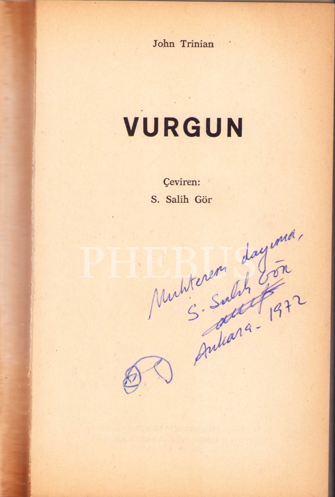 Vurgun, John Trinian, çev. S. Salih Gör, çevirmeninden ithaflı ve imzalı, Habora Kitabevi, İstanbul, 182 s., 11x19 cm, sırtı ayrık haliyle