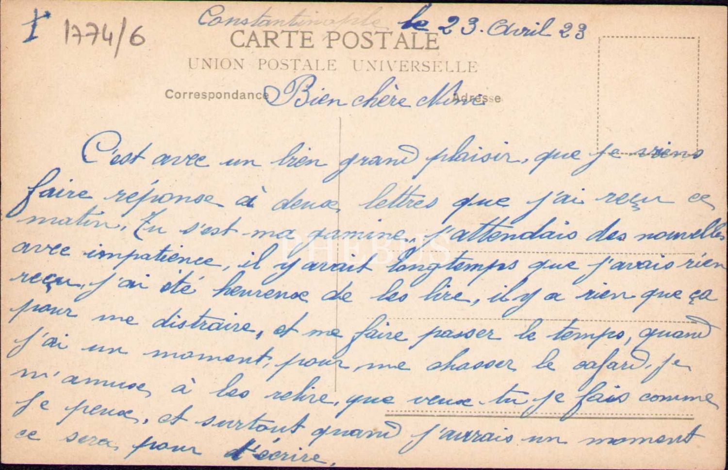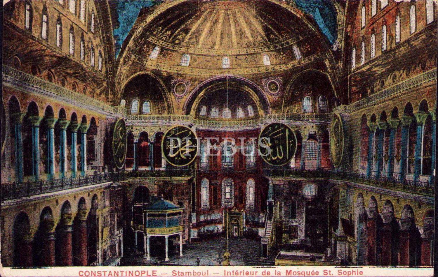 Ayasofya Camii içi, Constantinople-Stamboul, arkasında 1923 tarihli Fransızca mektup mevcut, kenarları hafif soyulmuş haliyle