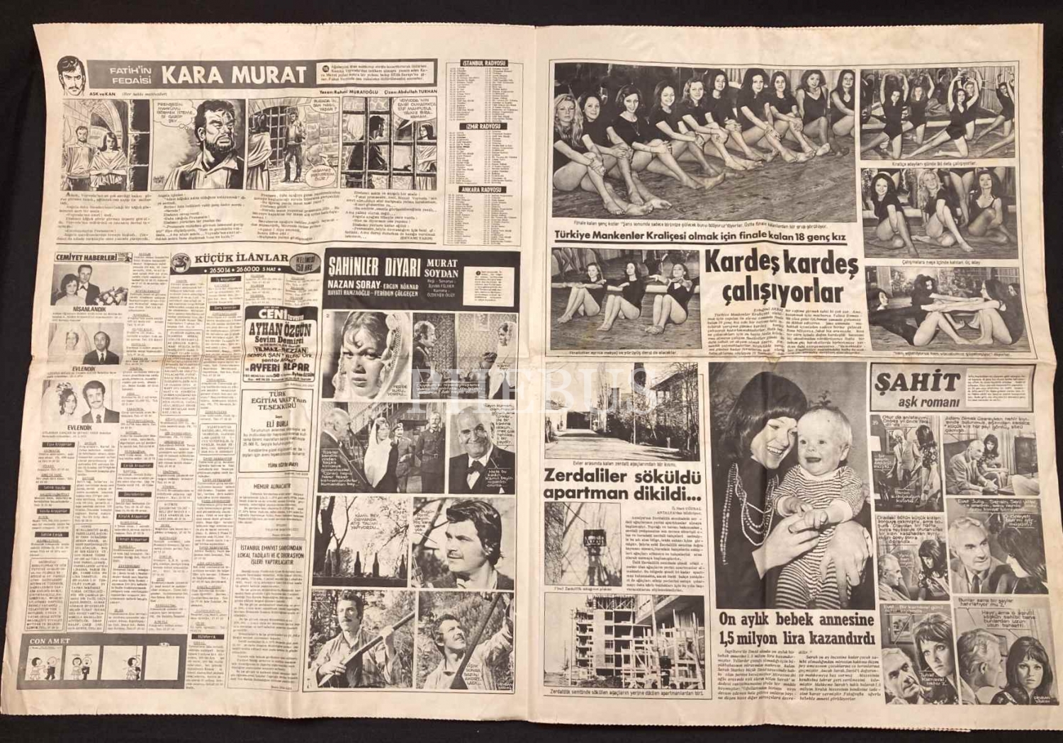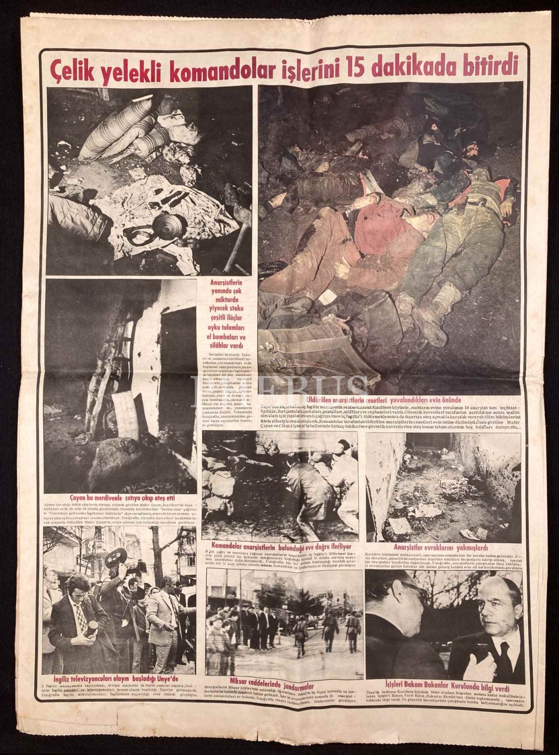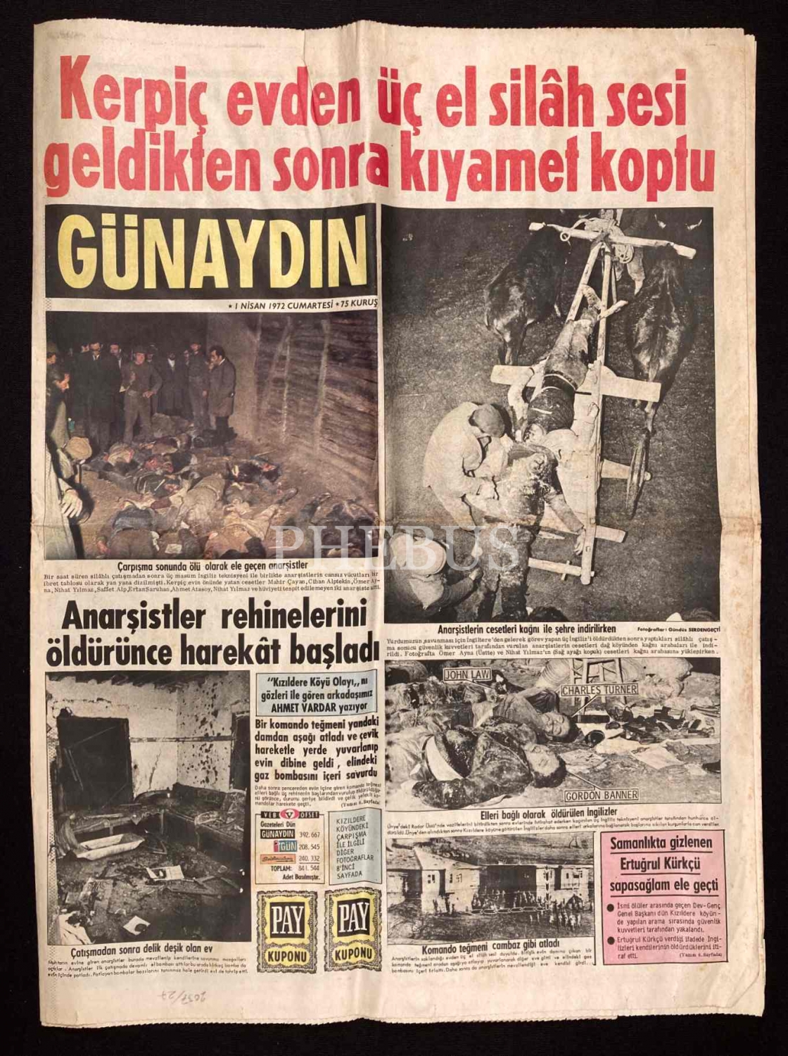 Günaydın gazetesi, 1 Nisan 1972, "Ünye Kızıldere Köyü Olayı"na dair manşet haberiyle, 42x58 cm, yorgun haliyle
