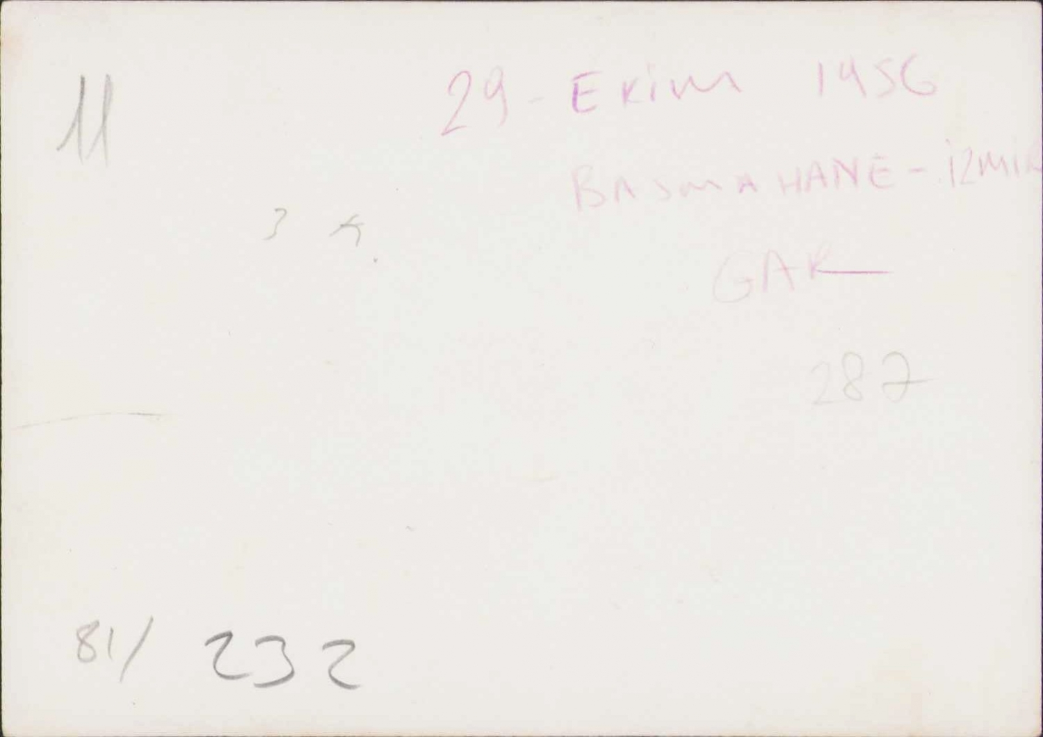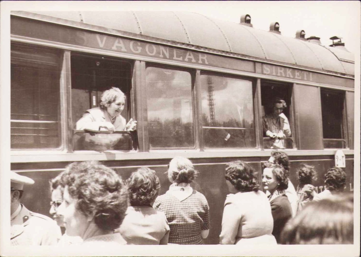 İzmir Basmahane İstasyonu'nda bir yolcu vagonu görünümü, 29 Ekim 1956 tarihli, 13x9cm