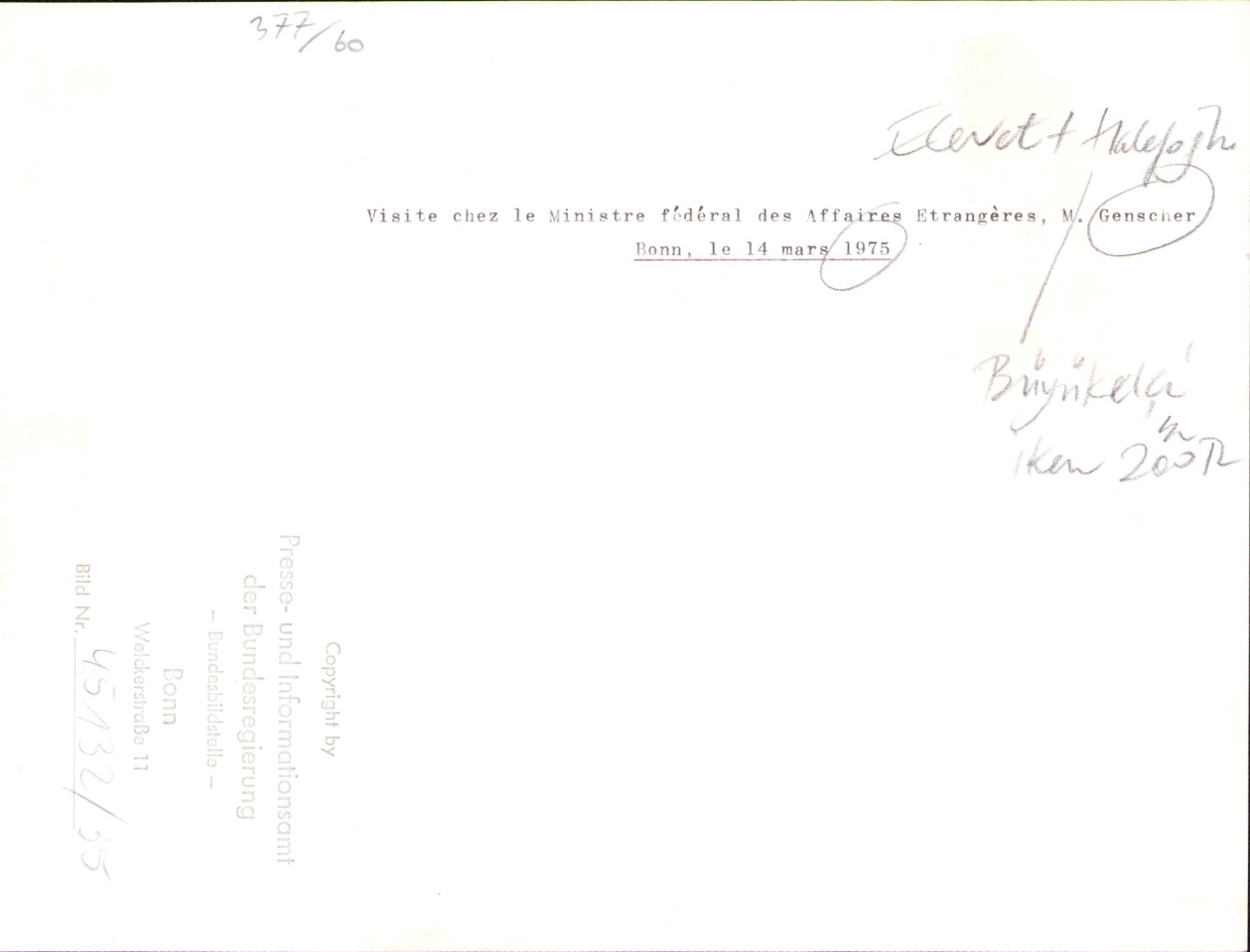 Bülent Ecevit, Vahit Melih Halefoğlu Büyükelçi İken, Almanya Dışişleri Bakanı Gencher ile birlikte, 18x24 cm