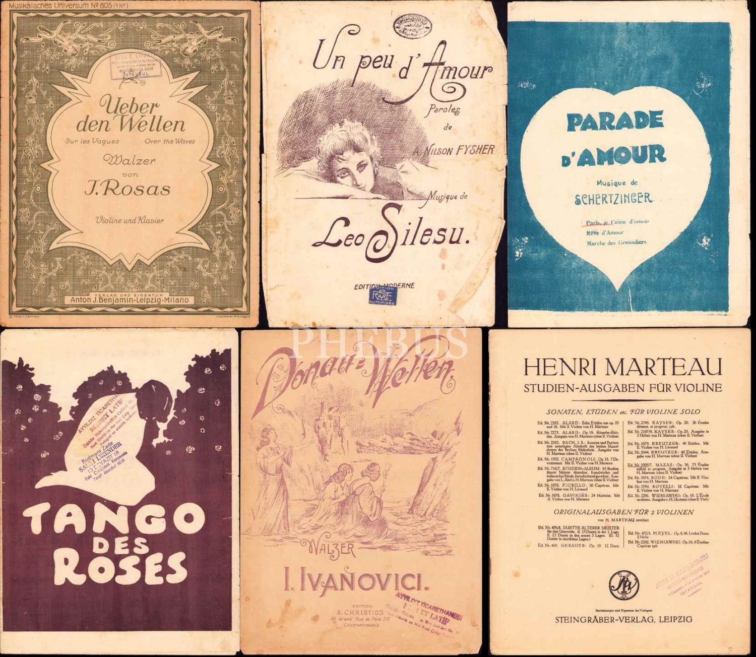 Yabancı dilde 6 adet nota, bir tanesi Constantinople baskı, 26x34 cm, kenarları yıpranmış haliyle