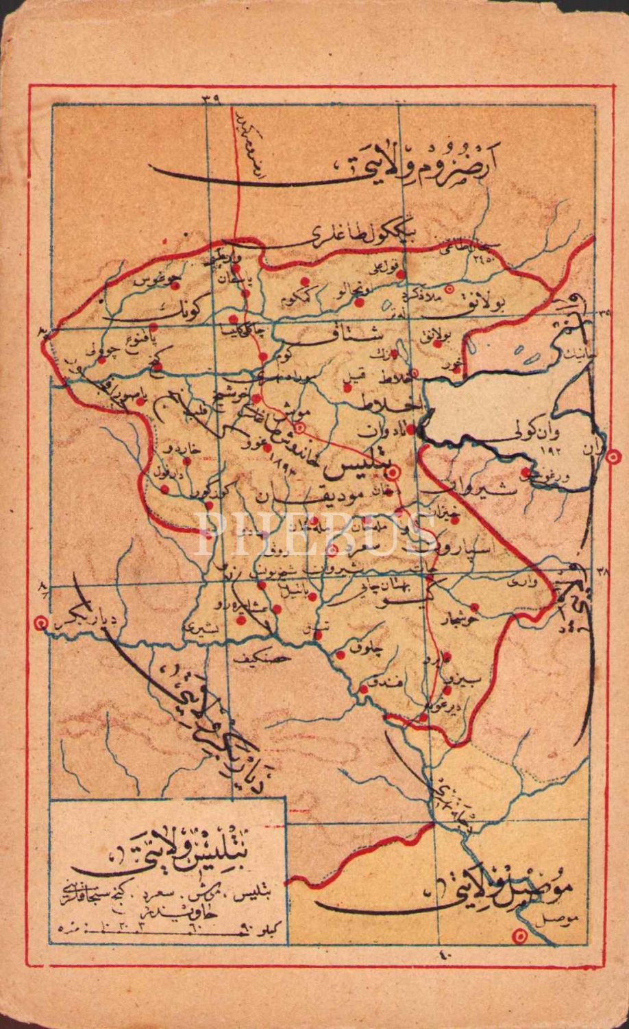 Bitlis Vilayeti Haritası, 10x15 cm, kenarları yıpranmış haliyle